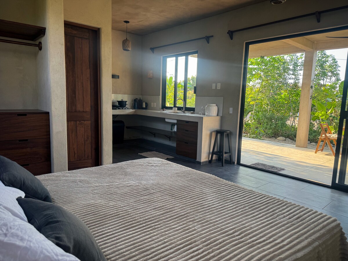 Relax in this calm, stylish space. Great for small families or couples who are looking to enjoy one of Mexico's most authentic and safe spots in the Pacific Coast. Troncones is a gem to explore, situated between jungle, mountains and ocean. Home to one of the best surfing points in the country. 15 min drive from world famous Saladita Beach (+other secret spots), walking distance to yoga studios, coffee shops and other activities (fishing, hikes, horses, etc). *GREAT WIFI* to work from home.