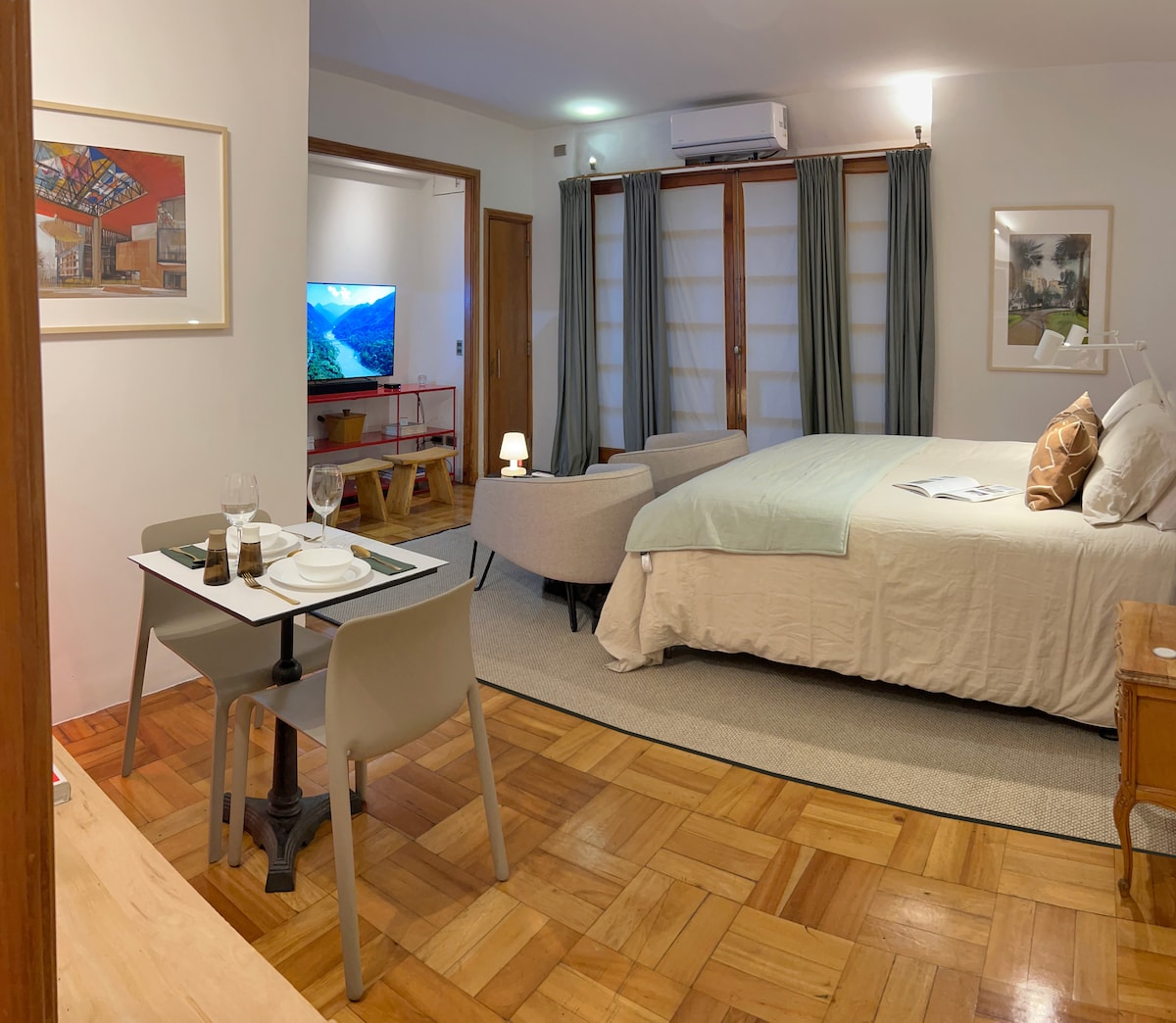 Ideal para parejas que valoran la calidad, este departamento esta muy bien pensado, esta ubicado en pleno casco histórico en un bello edificio patrimonial. Encontraras: - Una cómoda Cama King con sábanas y almohadas de excelente calidad. - Espacio remodelado, techos altos, ventanas de termpanel. - Cocina equipada - Iluminación que permite crear ambientes diferentes, - Excelente TV Oled y parlantes Sonos - Una vista que encanta. - Muebles de muy buena calidad. No te arrepentiras.