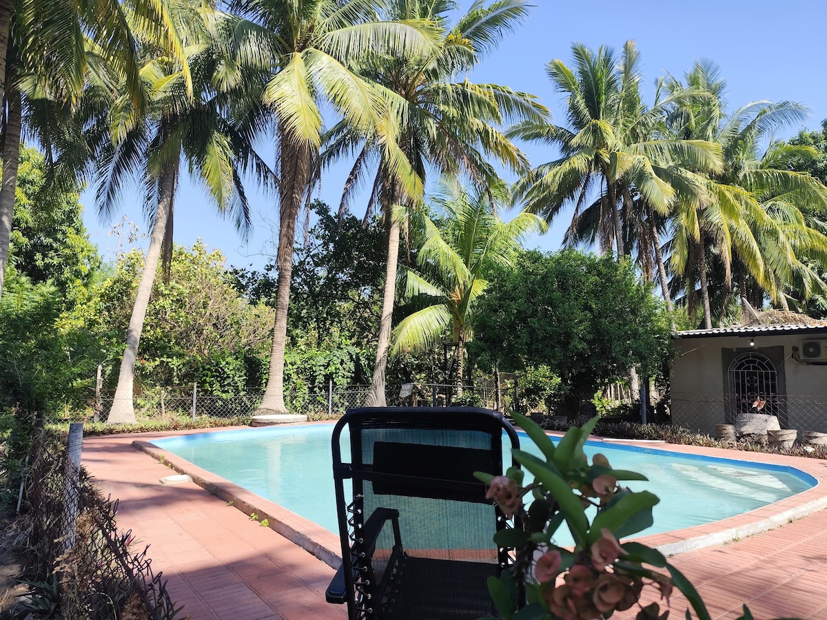 🌴Tropical ranch in Playa Las Hojas!🌴 ☀️ Upstairs suite with big balcony and pool view, A/C, ensuite & 3 queen beds ☀️ Separate villa steps away from pool with deck, ensuite, A/C & 2 queen beds 🍽️ Enjoy a full kitchen for home cooked meals, patio, BBQ 🏊 Pool (own risk, kids supervised), playground & huge 4000m² block with coconut & fruit trees. 🚗 Secure free parking 🌊 Just 1 min walk to the beach ✈️ 20 mins to airport & 45 mins to San Salvador 🆘 Always someone on-site to assist