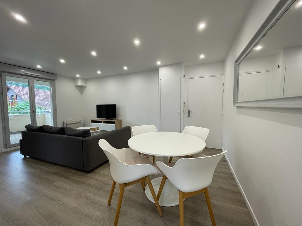 Logement entier - TENCIN - Parc de la Mairie - T2 neuf - Terrasse - Garage - 4 personnes - si besoin équipement bébé en plus - Vue montagnes. Une chambre avec un lit double et un canapé convertible 2 places. Nombreux équipements, placards intégrés, pompe à chaleur réversible.