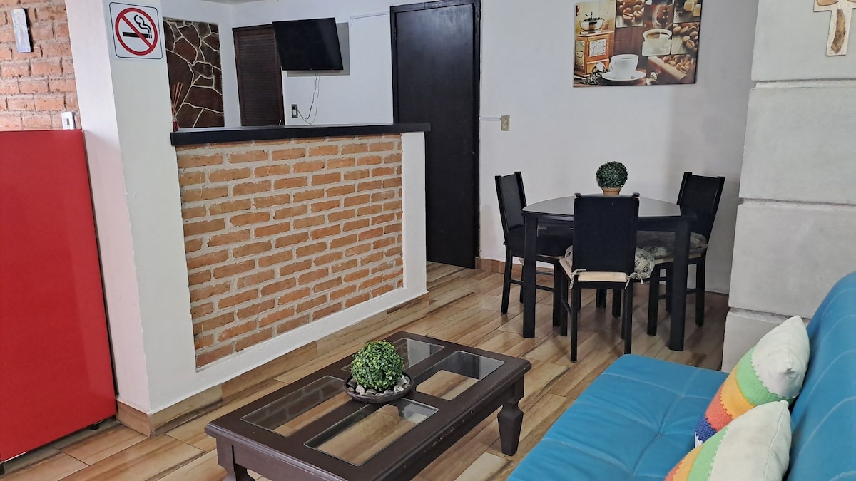 este cómodo departamento es para relajarte tal vez después de un arduo día de trabajo en zona 2000, periférico o de una madrugada de fiesta en la Hacienda San Juan Bautista. Ubicado menos de 20min del centro histórico, 10min de Chachapa a 5min de flor del bosque. Y a pasos del cerro de Amalucan! carne asada, ejercicio y naturaleza envolvente. Un espacio perfecto fuera de la abrumadora ciudad