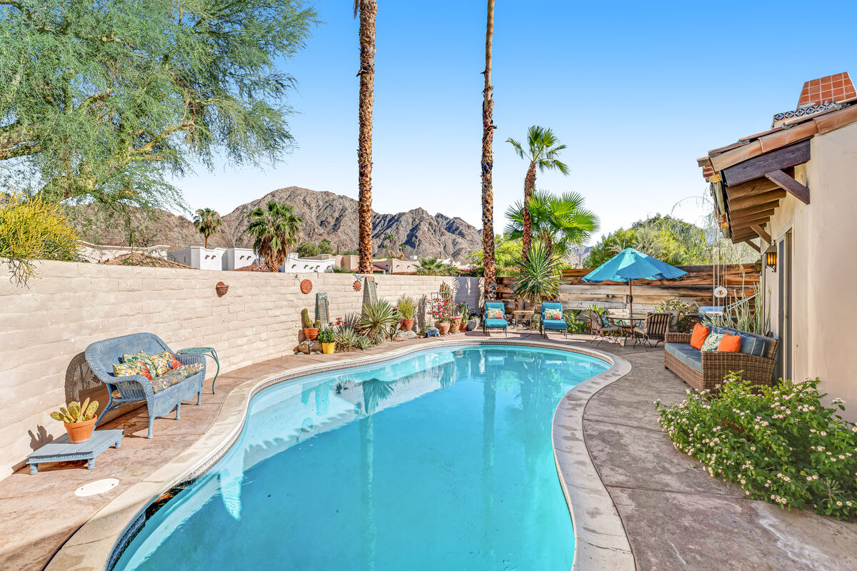 #259290 Encuentra tu oasis en el desierto en Casa de Cala, un refugio cuidadosamente diseñado y de estilo informal californiano en el pintoresco barrio de La Quinta Cove. Relájate y desconecta en los soleados espacios interiores, acogedoras habitaciones y baños tipo spa. Dentro de la privacidad de esta propiedad totalmente amurallada, puedes descansar bajo el sol, chapotear en la piscina y ver la puesta de sol sobre las montañas. ¡Cerca de los mejores campos de golf, restaurantes, senderismo, recintos de festivales y mucho más!