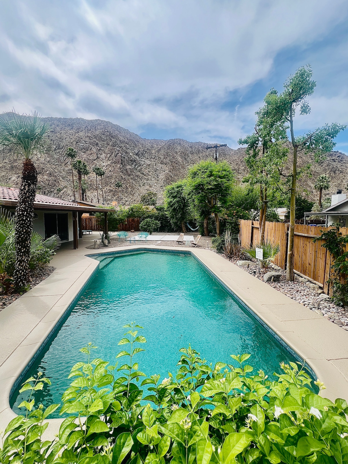 Viaja en el tiempo en esta casa de jardín de diseño de mediados de siglo con vistas a la montaña. La casa cuenta con características arquitectónicas originales, muebles retro y decoración contrastados con comodidades modernas, un patio de barbacoa y una zona de estar cubierta al aire libre con excelentes vistas. La casa está exuberantemente ajardinada con variedades exóticas de plantas del desierto y árboles maduros y el área de piscina tipo oasis invita a una sensación de relajación y paz. Permiso DE alquiler A corto plazo #066151