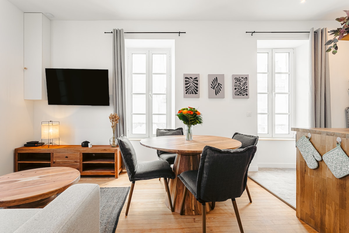 Bienvenue dans ce charmant appartement, où l’architecture rochelaise 🏛️ s’accorde parfaitement avec l’atmosphère apaisante du centre-ville. Le mélange subtil de bois naturel, de tissus blancs et de métal compose un univers lumineux et harmonieux ✨, un véritable cocon de confort et de sérénité. Situé au cœur du centre historique de La Rochelle, ce logement vous permet de profiter pleinement des commerces, cafés et animations environnants 🛍️☕️, sans jamais avoir besoin de votre voiture.