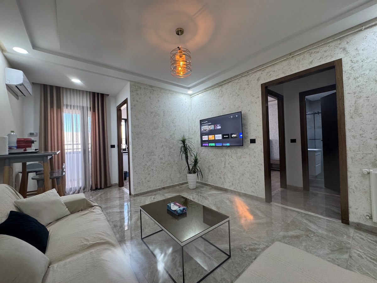 😊 Bienvenido a su hogar lejos de casa en Aouina. 🌟Luminoso, moderno y cómodo, es la opción ideal para disfrutar de Túnez con estilo, sin pasarse del presupuesto. 📍A solo: 8 minutos de La Marsa, 7 minutos del aeropuerto Cerca de tiendas y restaurantes Los ➕ : Aparcamiento privado en el sótano. Edificio seguro con vigilante las 24 horas. Wifi, aire acondicionado, cocina equipada. ¡Deja las maletas y sal a explorar! 🇹🇳 Perfecto para un viaje relajante por la ciudad o una estancia profesional con estilo 💖