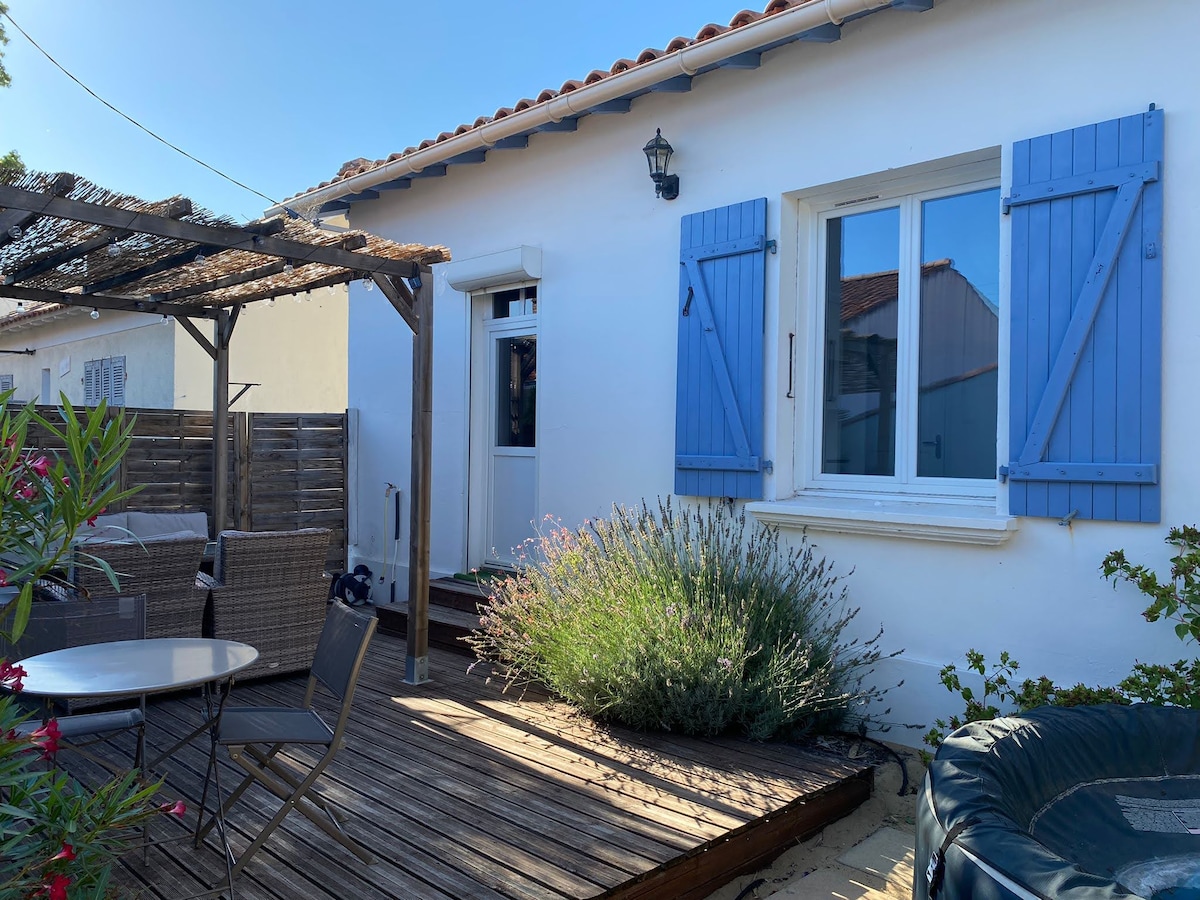 Esta casa es nuestra casa de vacaciones, pasamos muy buenos momentos con nuestros 3 hijos y nos gustaría que pudiera acoger a viajeros de paso junto al Atlántico... La casa está muy bien situada, a 5 minutos de la playa y del centro de la ciudad. Está en el fondo de un callejón sin salida, muy tranquilo. Todos los desplazamientos se pueden hacer a pie o en bicicleta. El jardín de 400 m² está cerrado y arbolado. Hay una plaza de aparcamiento. Ideal para una estancia en familia o con amigos.
