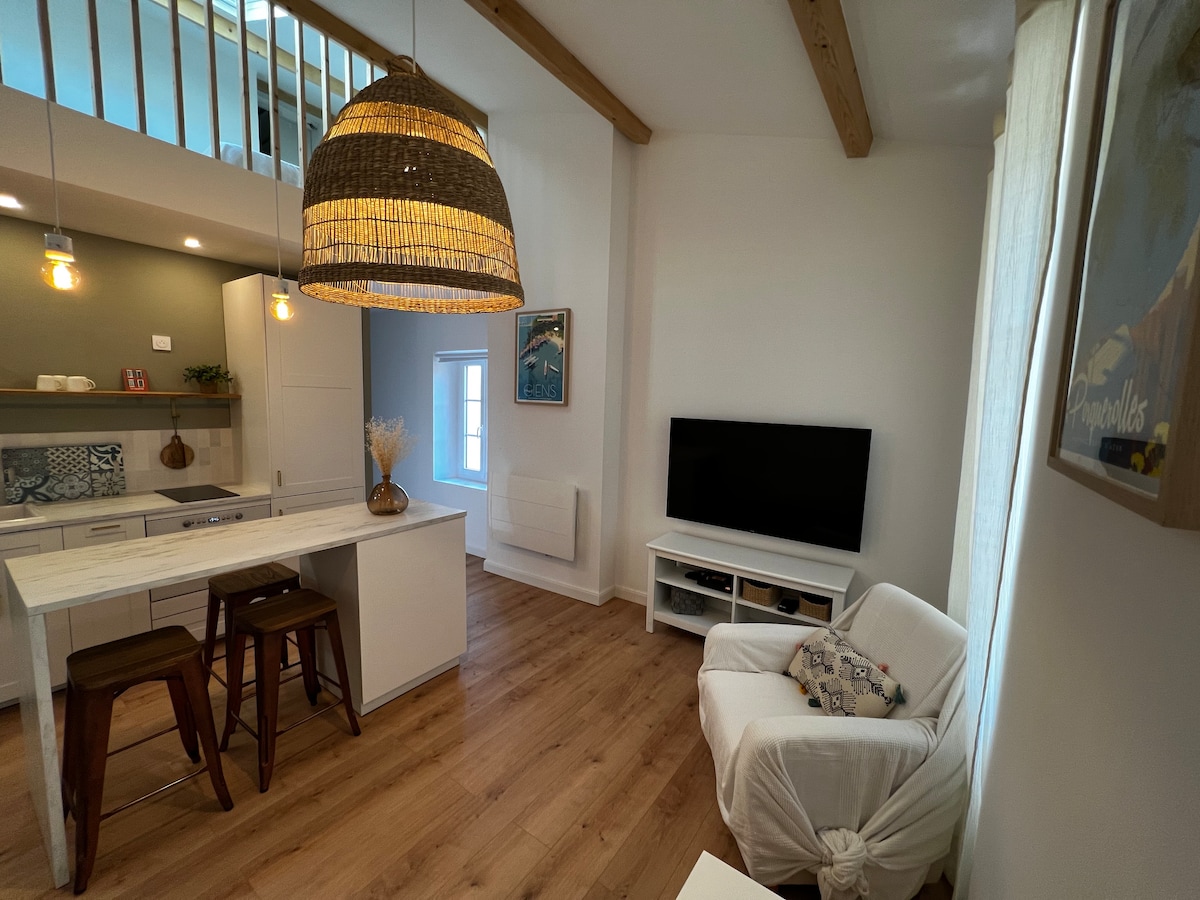 Elegante, refinado y funcional, este apartamento nuevo tiene una superficie de 45 m2, para un máximo de 4 personas. El apartamento está situado en el primer y último piso de una casa. Dispone de un aparcamiento subterráneo gratuito de 300 plazas a 50 m. El apartamento consta de 2 habitaciones bellamente decoradas con camas tamaño queen de 160 cm. Tiene una terraza de 6 m2 con vistas a la plaza Jean Jaures a 50 m. Cocina equipada (lavadora secadora,lavavajillas, inducción, horno, microondas, campana extractora TV Netflix