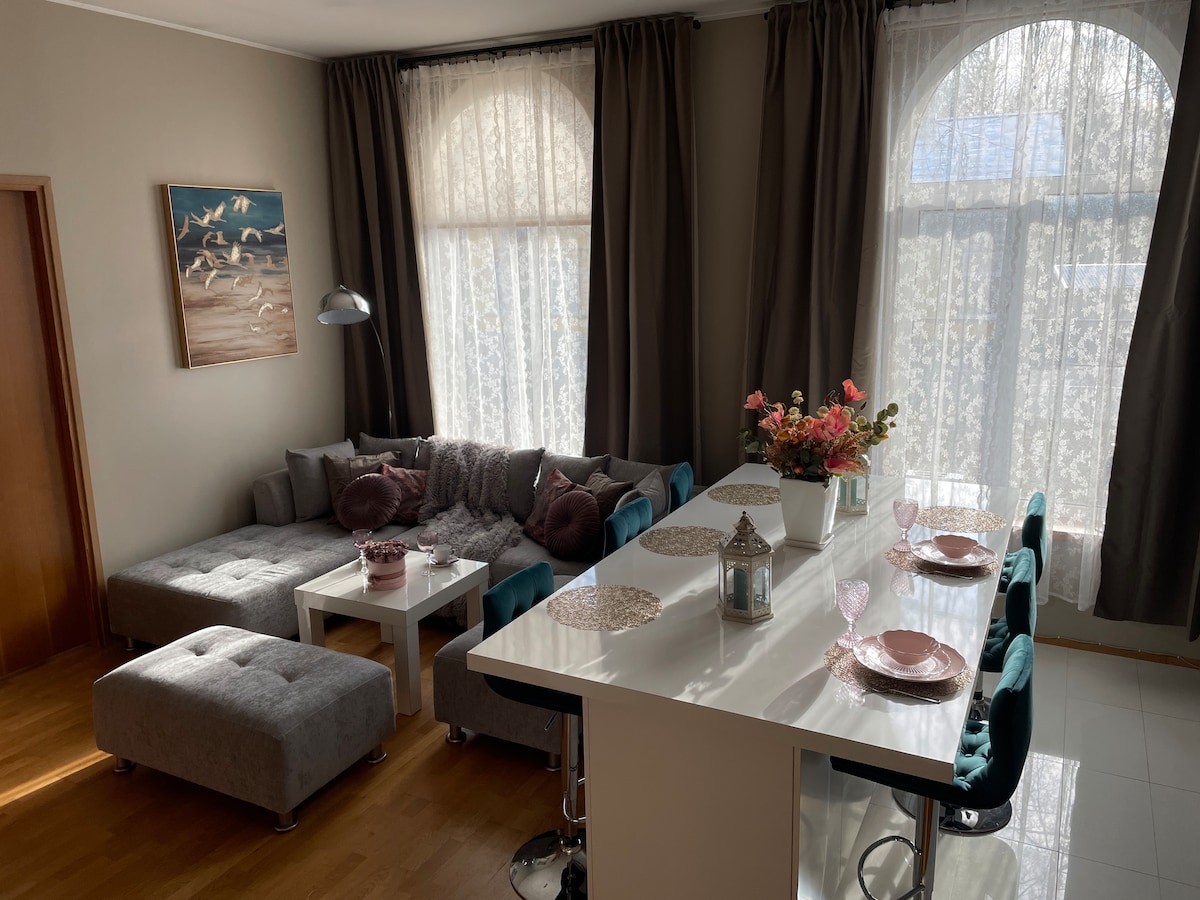 Ven y disfruta de tu estancia en este alojamiento único y romántico. Situado en la calle más bonita de Rakvere. El apartamento tiene sauna, mucho arte y biblioteca privada. El espacioso apartamento tiene 72 m2, más grande que la mayoría de los demás. El apartamento tiene cocina totalmente equipada, freidora de aire, cafetera Illy, lavavajillas, lavadora con secadora. El dormitorio tiene cama tamaño king para 2 y cama adicional para 1. Entorno tranquilo, aparcamiento privado. Todo lo que necesitas está a poca distancia a pie: tiendas, pista de tenis, teatro, spa.
