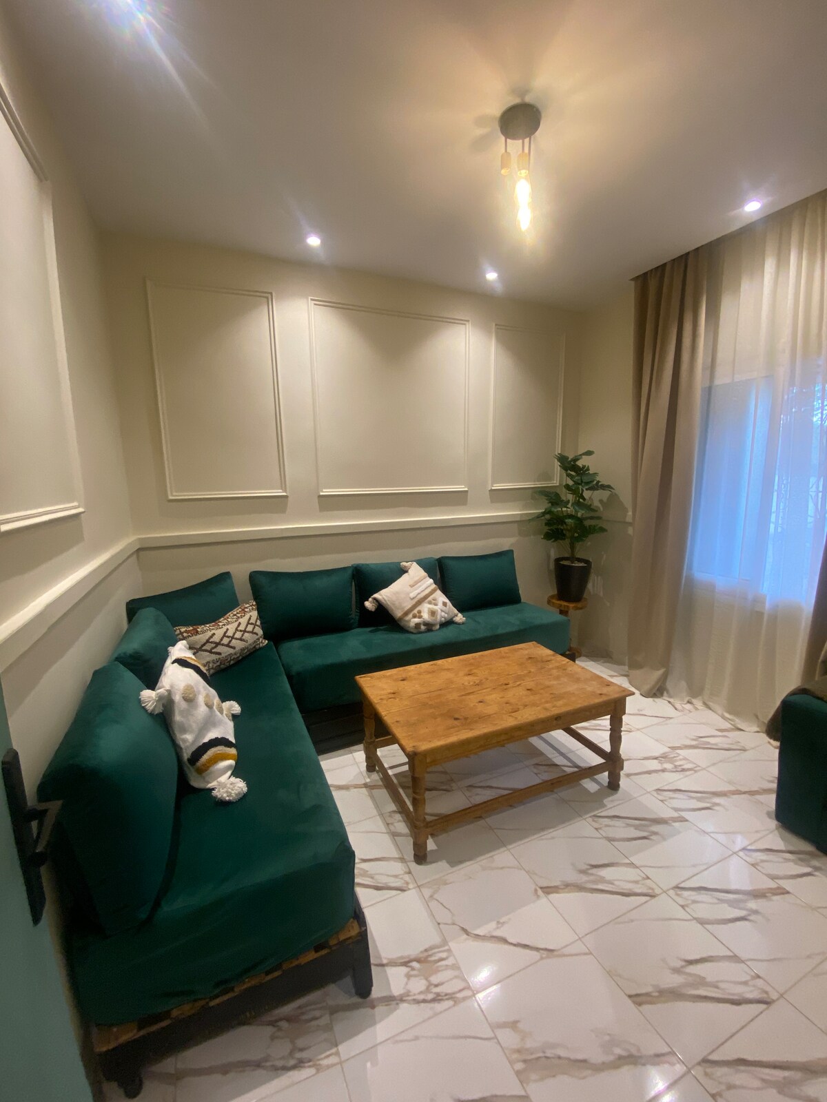 1er piso cerca de todos los lugares(mezquita,estación CTM y taxi, supermercado, banco, escuela, café...)un alojamiento amueblado y equipado con todos los equipos necesarios para vivir cómodamente .generalmente incluye muebles, electrodomésticos(cocina equipada,refrigerador,horno,lavadora,calefacción eléctrica,calentador de agua eléctrico...)Equipo adicional(manija electrónica,Ropa de cama:sábanas, toallas,Equipo de limpieza,Conexión a Internet(Wi-Fi), (TV).