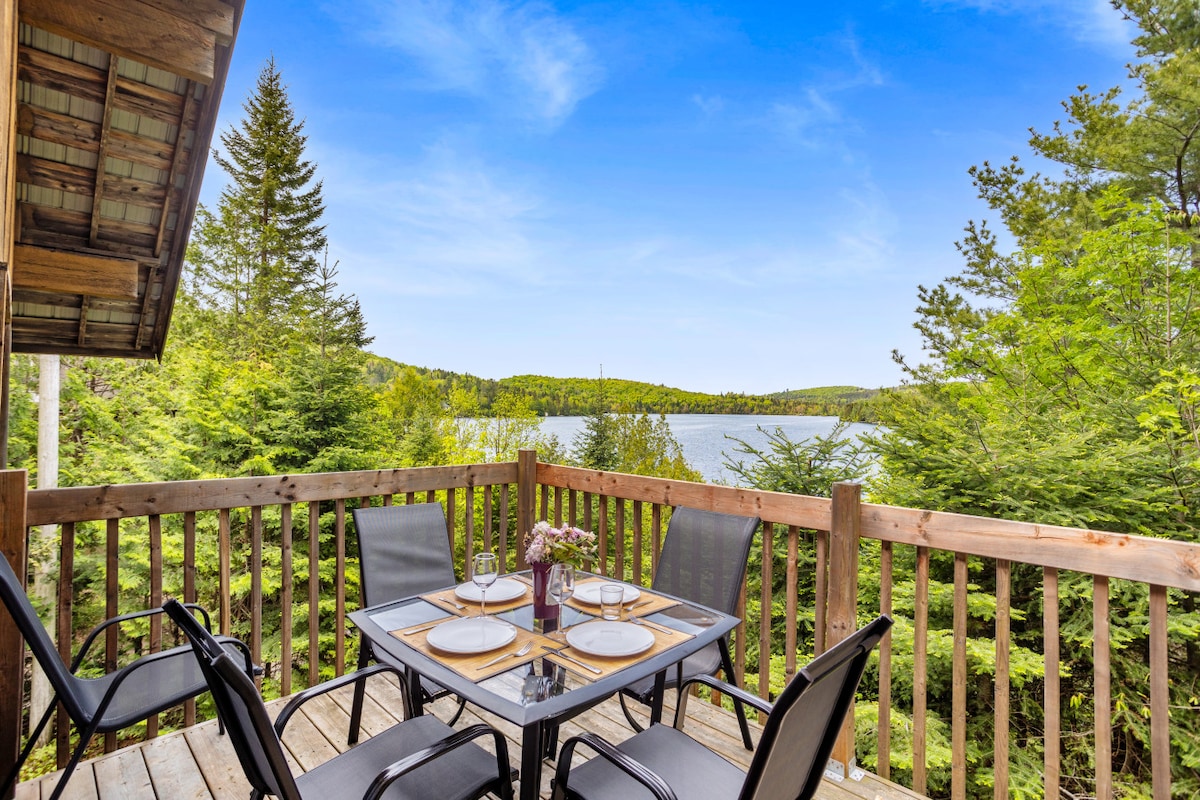 Nuestro chalet en el bosque nórdico es perfecto para pasar tiempo de calidad en pareja (o con un niño) o para un tratamiento de trabajo (con wifi de alta velocidad). El interior de madera es cálido y acogedor. Las ventanas de altura completa ofrecen unas vistas impresionantes sobre un valle boscoso. La cocina y la sala de estar de concepto abierto te mantienen en la conversación mientras cocinas. Si prefieres cocinar afuera, hay un fogón con parrilla y mesa de comedor al aire libre. A solo 70 minutos en coche de Montreal. El lago está a 25 minutos a pie si aparcas cerca.