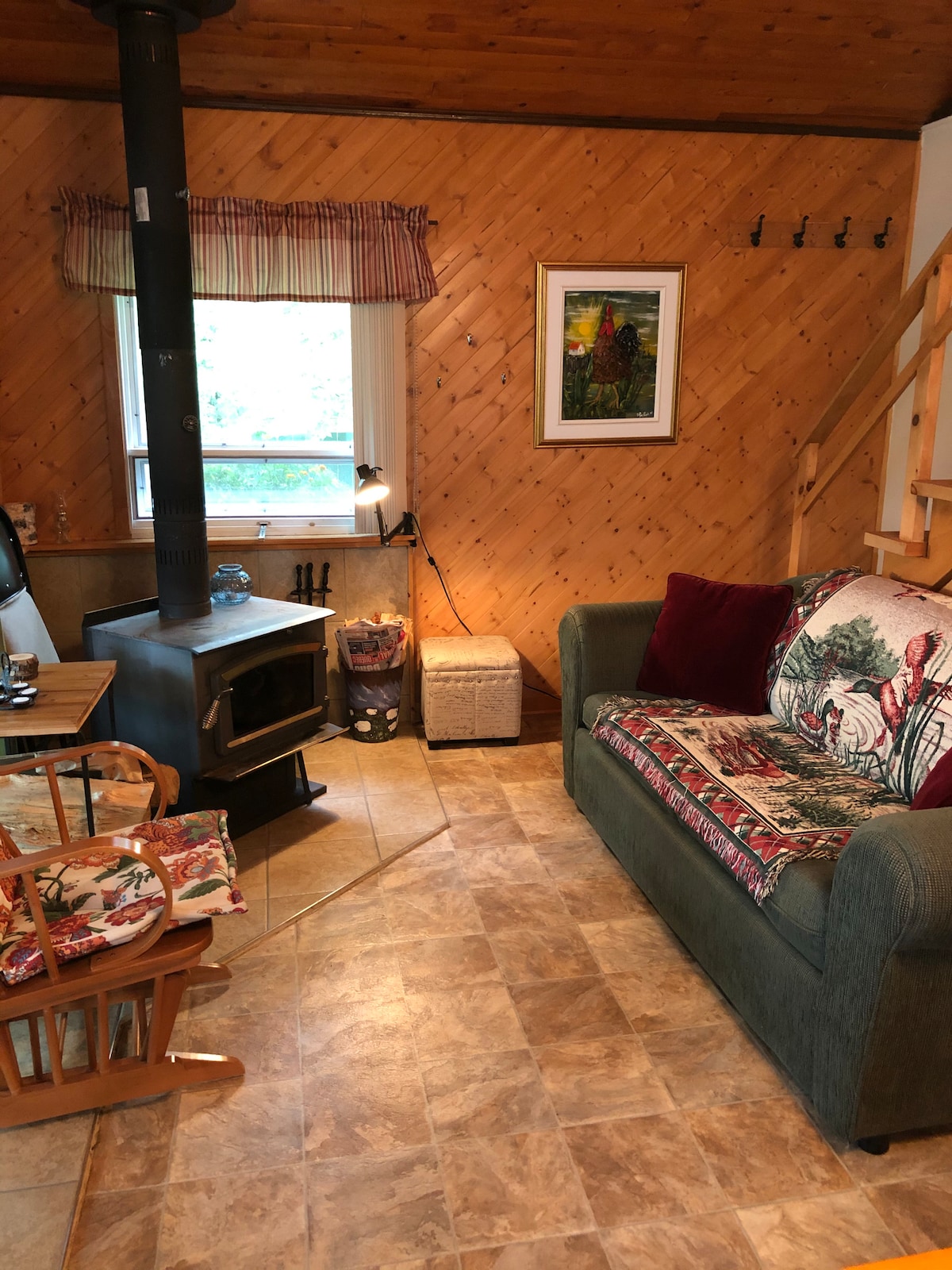 Cabaña con todos los servicios. Encantador lugar a orillas de un pequeño río e incluye acceso al lago Sept-Iles para embarcaciones: 4 kayaks para adultos, 1 para niños y una tabla de paddle surf. Chalet con interior de madera que incluye estufa de gas(en temporada). Techo de catedral en el salón. Muy buen lugar sin importar la temporada. No hay vecinos cerca de la cabaña... ¡Privacidad asegurada! Varios cientos de kilómetros de pistas de ciclismo de montaña a 3,5 km de la cabaña. Número de establecimiento 297777