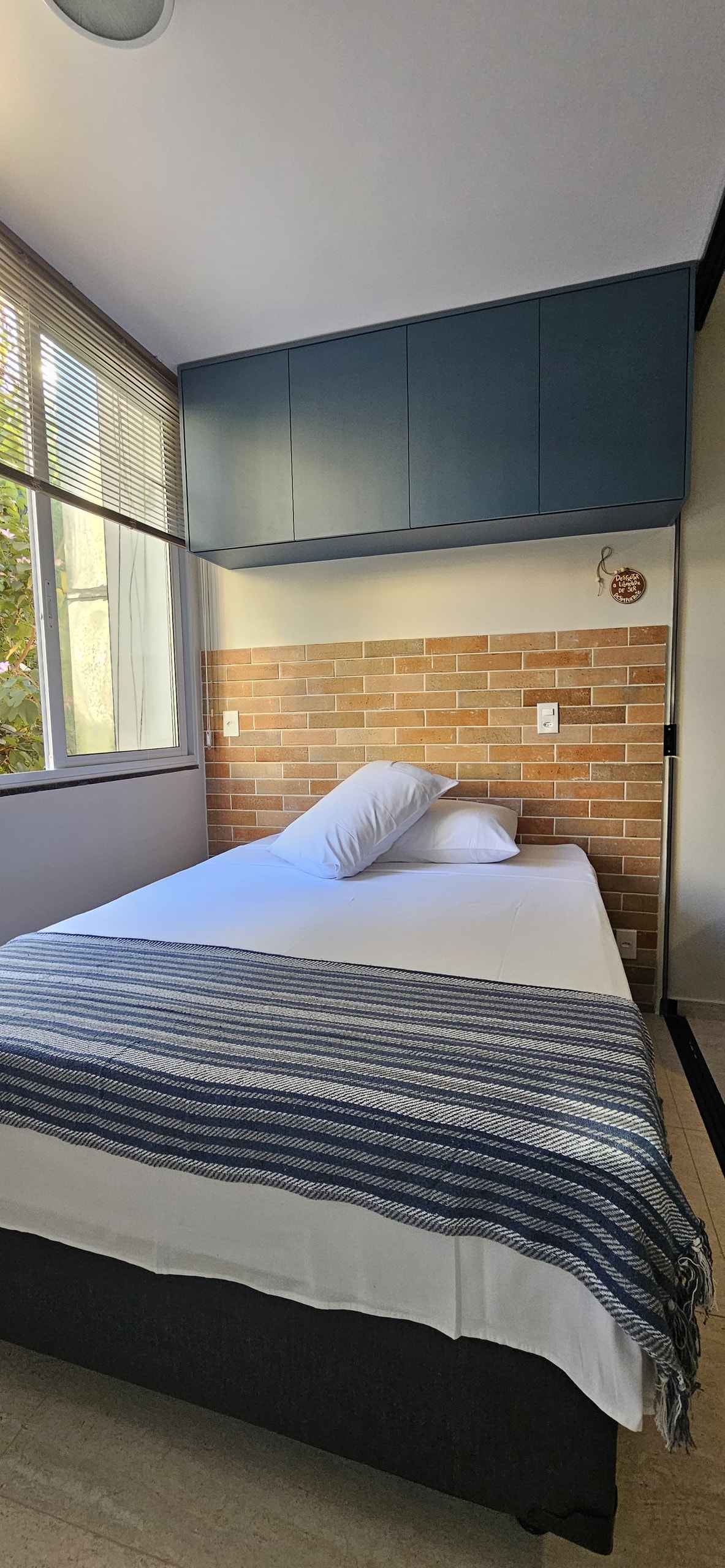 Espaço charmoso, equipado e limpinho em uma excelente quadra de Brasília, projetado por arquitetos para oferecer uma experiência completa de estadia na capital. Com varanda, tem cozinha completa e jogo de cama e banho de qualidade. Vizinhança tranquila, mas super bem equipada, com restaurantes e lojas, supermercado e farmácias e até academia com passe diário ou semanal. O edifício possui vigia noturno PRÉDIO SEM ELEVADOR. projeto por @ladrilharia_arq fotos por @mauricio. photo