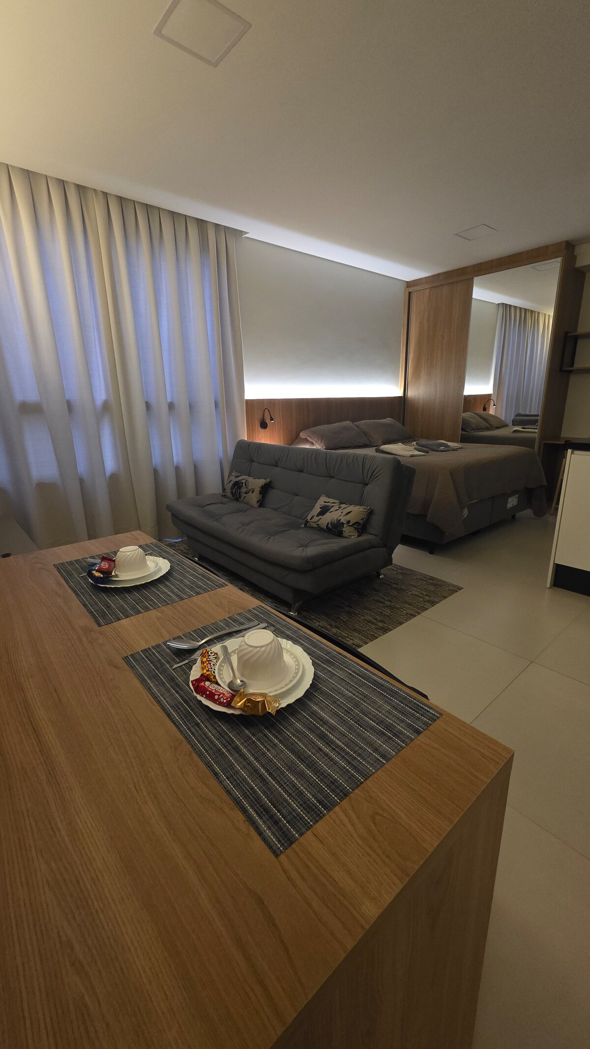 Hermoso estudio, completo, ¡justo al lado de la UFSC! ¡Ven a relajarte y estudiar en nuestro estudio muy cómodo y práctico, cerca de la Universidad Federal de Santa Catarina (UFSC)! Lo que encuentras aquí: - Espacio acogedor con todo lo necesario - ¡Excelente ubicación, en Trindade! - Acceso fácil al transporte y a las tiendas locales. Perfecto para: - Aquellos que buscan un lugar para alojarse en la región UFSC - Quién está de paso por la ciudad. - A 10 minutos del CentroSul.