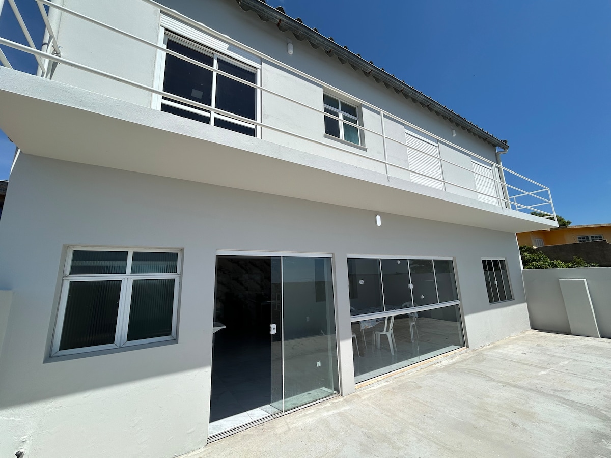 Casa completa en São Lourenço a pocos pasos de Laguna dos Patos. El espacio incluye un patio privado cerrado con barbacoa, hamaca, estacionamiento y pérgola con viñedo. También cuenta con servicios interiores como aire acondicionado, wifi y TV.