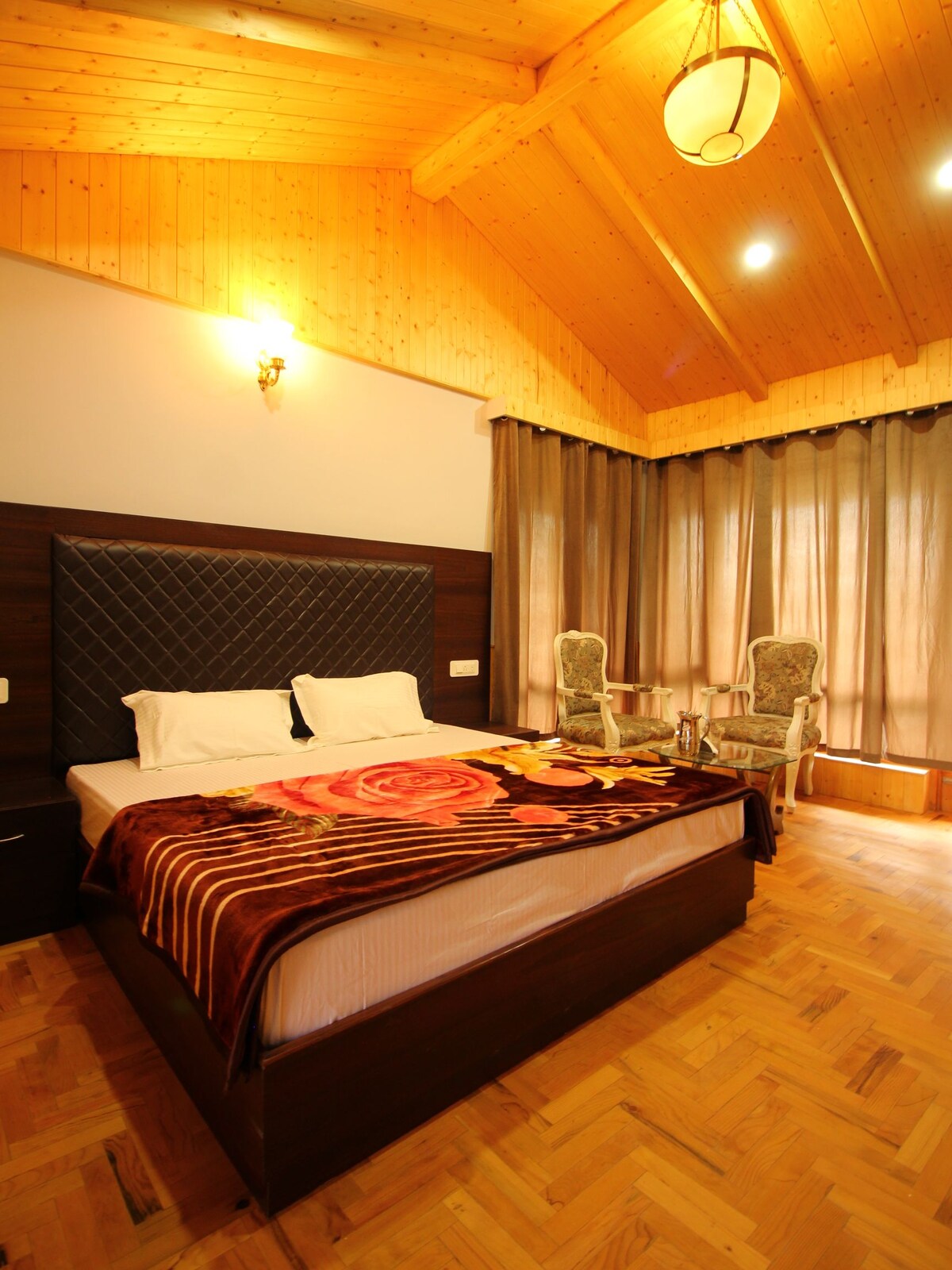 Royal Holiday Cottage Manali es una cabaña familiar. Nuestra cabaña con su casa de campo de 2 dormitorios dobles y con cocina adjunta. Habitación en la planta baja por las escaleras bajando las escaleras con una sala de estar al aire libre común y también sala de estar común con chimenea Royal Holiday Cottage está ubicada en medio de un huerto de manzanas y promete proporcionar lujo, comodidad y privacidad de la multitud enloquecedora, donde realmente puedes sentirte de la naturaleza. Royal Holiday Cottage está situada a unos 3 km del centro comercial The Mall.