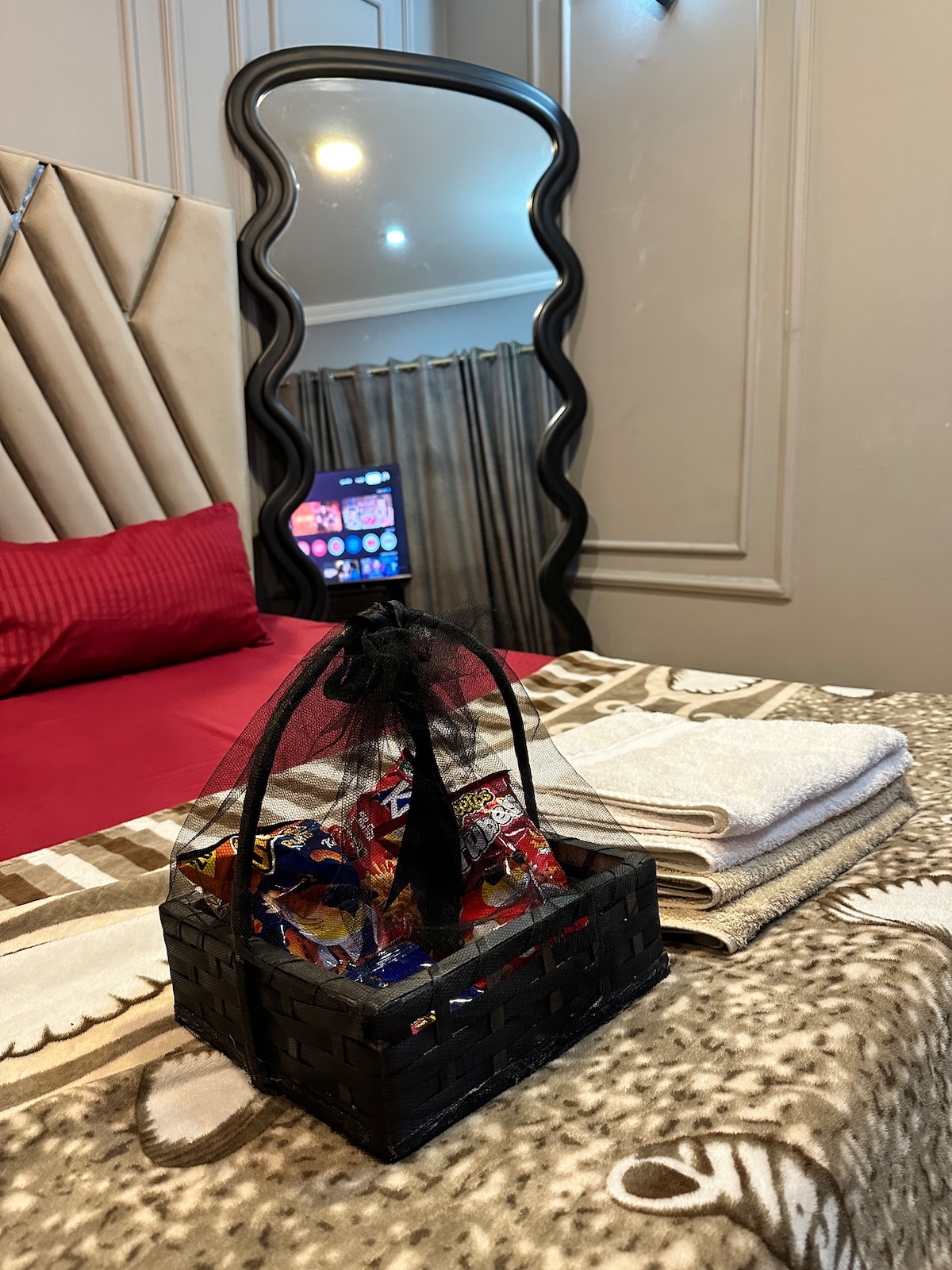 Lugar ✔ privilegiado en DHA Fase 5, cerca de Dolmen Mall, Packages Mall y Fase 6 Raya Recepción ✔ con personal las 24 horas, seguridad de primer nivel y CCTV para tu tranquilidad ✔ Aparcamiento interior seguro gratuito en el hotel Electricidad de reserva✔ fiable 24/7 ✔ Cafeterías, restaurantes y tiendas de productos básicos a un paso de tu puerta ✔ Perfecto para turistas, viajeros de negocios y familias pequeñas que buscan comodidad - NO se permiten fiestas, drogas, alcohol o parejas no casadas - NO se procesarán reservas después de las 22:00 h de acuerdo con los SOP de Penta