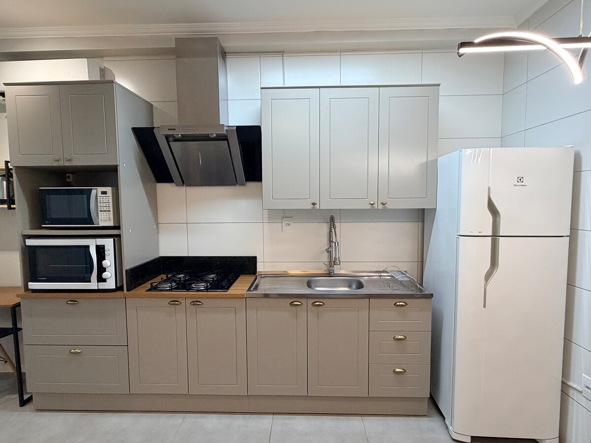 Loft frente a Univates, totalmente equipado y decorado para su comodidad. Cuenta con una cocina completa (estufa, refrigerador, microondas, utensilios de cocina, ollas, sartenes y platos), así como con una parrilla para el tiempo libre. ¡Cerca de todo, en la mejor ubicación de la ciudad de Lajeado! Ofrece aire acondicionado y un televisor inteligente. ¡Ideal para estancias cortas, con total comodidad! ¡Puede contar con su anfitrión para disfrutar de una estadía excelente!