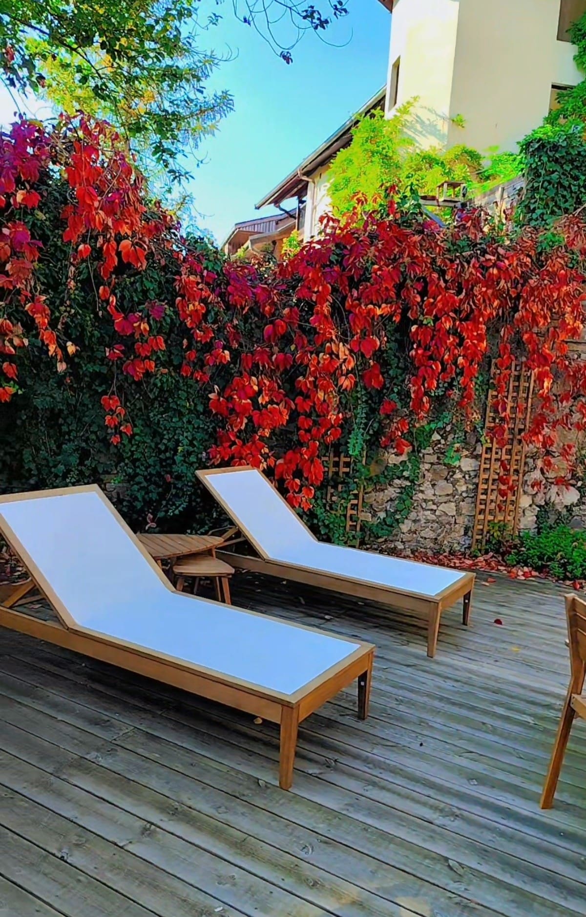 Ouverture EMPLACEMENT EXCEPTIONNEL 500m à pieds des rives du lac 250m à pieds de la voie verte, piste cyclable 6 kms d'Annecy 30 min des pistes de ski JARDIN PRIVE BELLE PIECE A VIVRE LE CHARME l'une des plus veilles bâtisses du village, rénovée avec soin. LUMINEUX et très bien EQUIPE : 2 écrans plats : un dans chaque espace nuit 2 douches :une par chambre 1 WC indépendant cuisine avec four, micro ondes, réfrigérateur, congélateur, plaques induction sèche linge, lave linge.. 1 PARKING