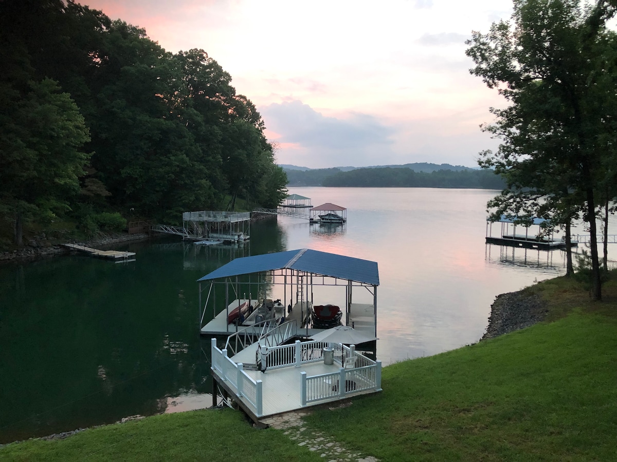 Joya frente al lago Hiawassee: muelle para barcos con terraza en la azotea