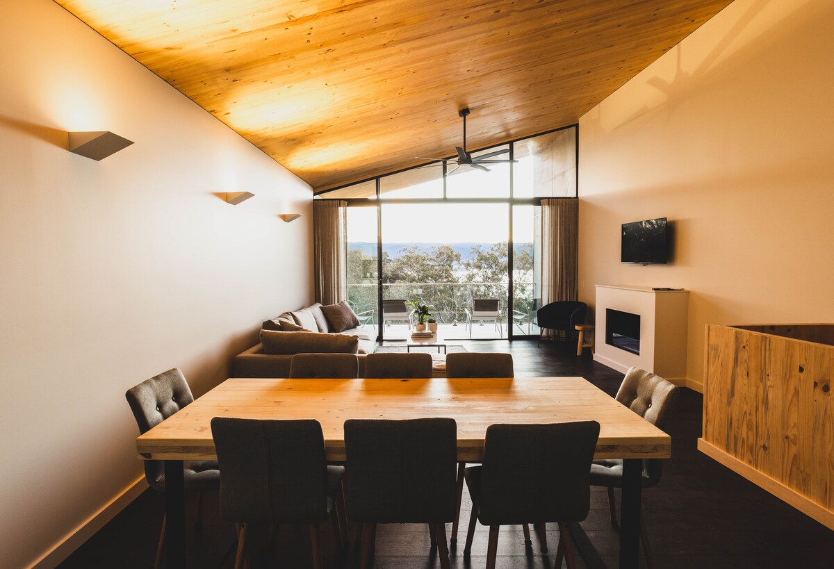 Gezellig | adj. (heh-SELL-ick) 'acogedor, agradable, atractivo, a menudo se utiliza para describir una situación social y relajada. También puede indicar pertenencia, tiempo pasado con seres queridos, ponerse al día con un viejo amigo o simplemente la unión general que da a la gente una sensación cálida. Gezellig es un chalet de lujo de 2 dormitorios y 2 baños de propiedad privada, construido y diseñado por el maestro, convenientemente ubicado en el centro vacacional Lake Crackenback con impresionantes vistas a Rams Head Range y al lago Crackenback.