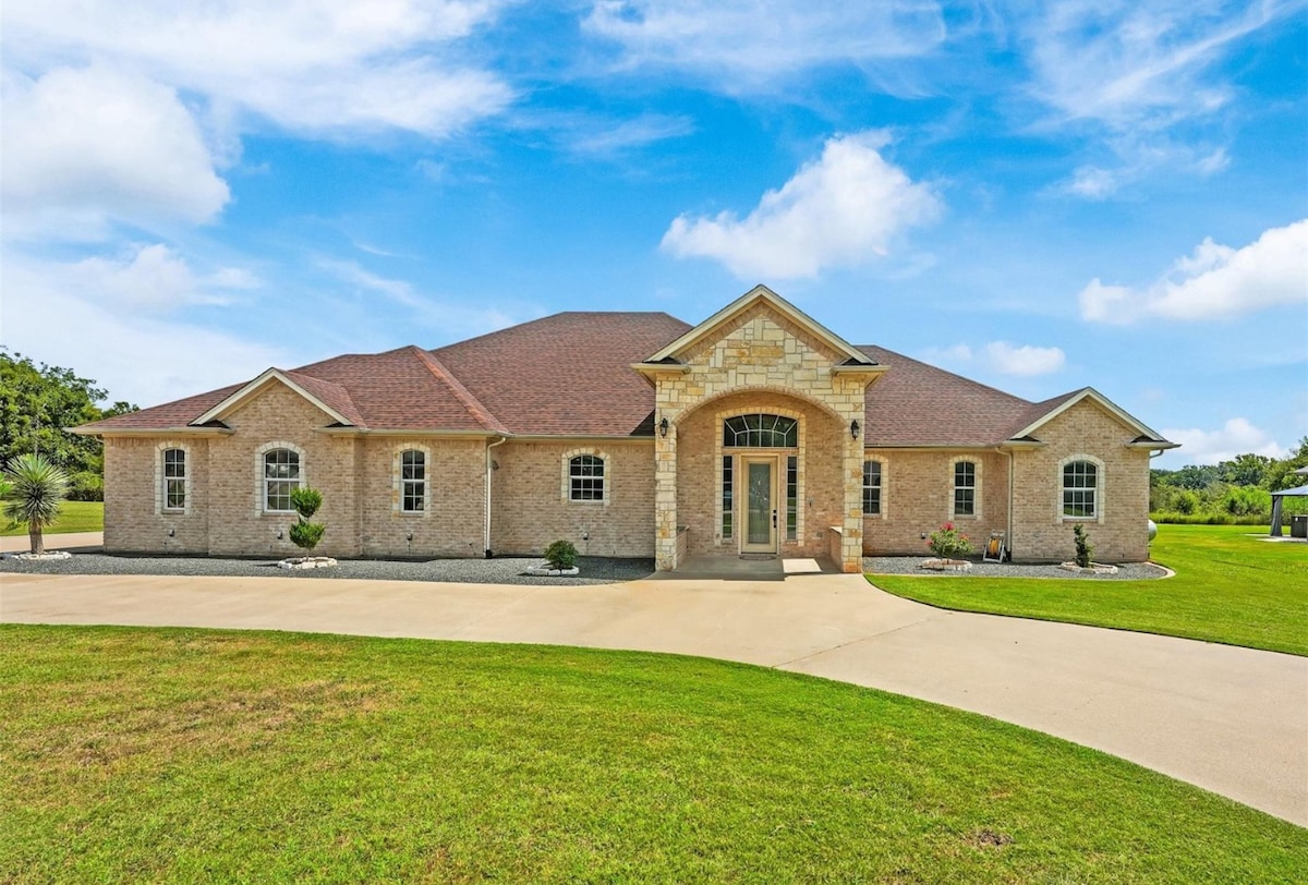 ¡Ven a disfrutar de unas vistas impresionantes! Esta casa privada se encuentra en casi un acre de propiedad frente al agua e incluye un muelle privado, piscina, jacuzzi y cocina al aire libre. En el interior, disfruta de la relajación en su máxima expresión, incluida la sala de juegos, la sala de entretenimiento con asientos para más de 20 personas. Televisores inteligentes en todas las salas de estar y dormitorios. Todo esto a menos de 5 kilómetros de la famosa Granbury Square. También tenemos una pequeña casa contigua disponible para alquilar y agregar 4 huéspedes adicionales https://www.airbnb.com/l/rD4kTJAO
