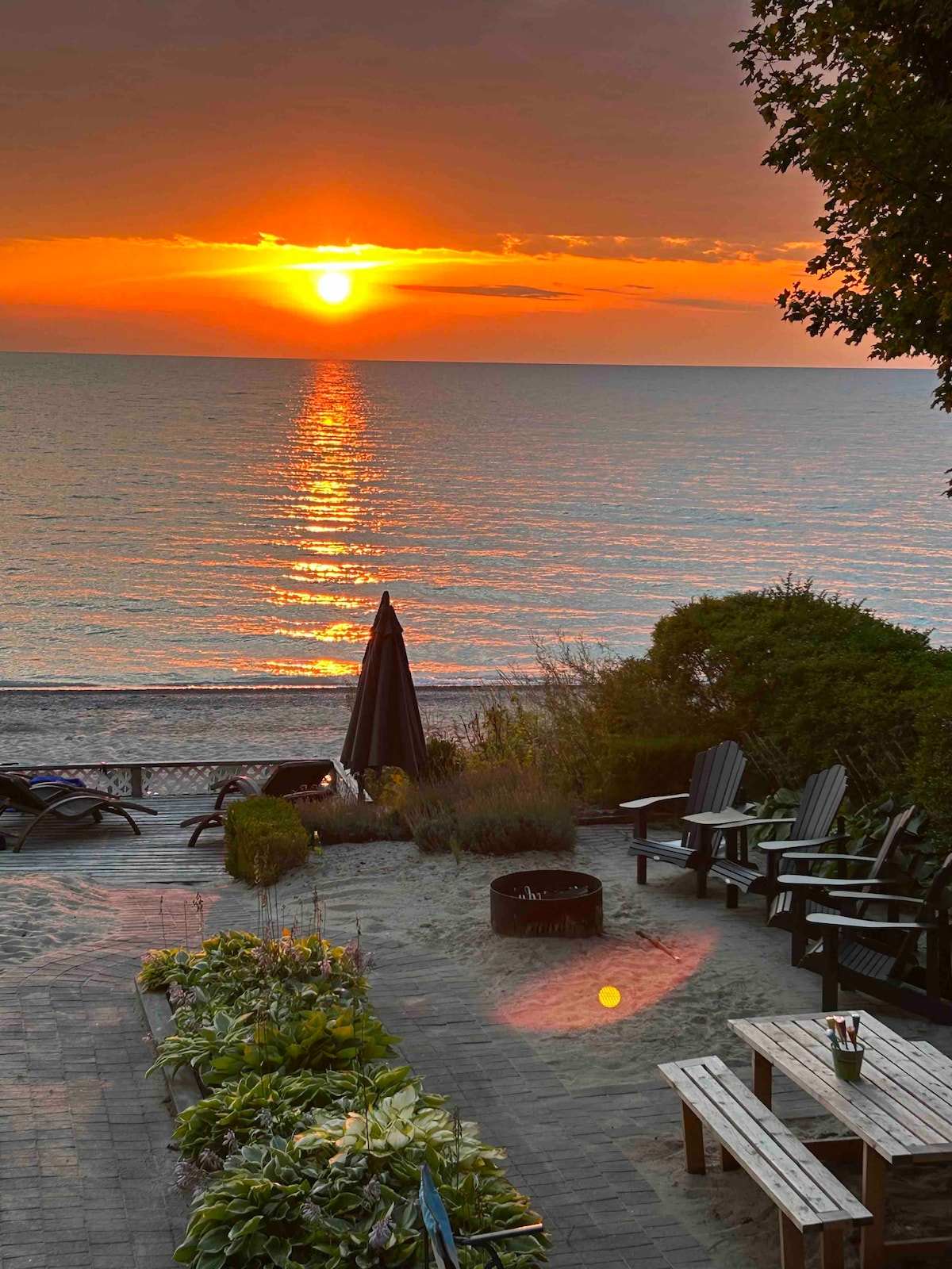 Descubre la serenidad en nuestra moderna casa de campo frente al mar del lago Huron, a solo 10 minutos en auto de Grand Bend & Bayfield. Disfruta de una cama tamaño king de primer nivel vestida con sábanas acogedoras, delicias culinarias sabrosas en la cocina totalmente equipada y relájate junto a la acogedora chimenea. El espacioso baño y las impresionantes vistas del atardecer elevan esta escapada romántica. ¡Asegura tu lugar ahora para disfrutar de una encantadora mezcla de comodidad y encanto contemporáneo!