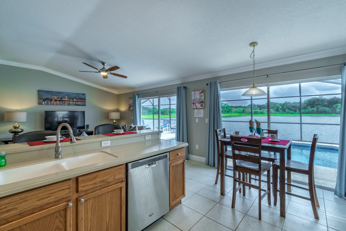 CERCA DEL CAMPUS NACIONAL USTA LAKE NONA Esta hermosa casa con piscina privada e impresionante vista al agua céntrica, a solo 10 a 15 minutos de OIA, cerca de todas las atracciones principales; como parques temáticos, Universal Orlando, Sea-World y Orange County Convention Center y a poca distancia a pie a tiendas de comestibles. Esta casa es ideal para parejas, viajeros de negocios y familias. Nuestros huéspedes también tendrán acceso a Community Club House, gimnasio y gran piscina estilo resort.