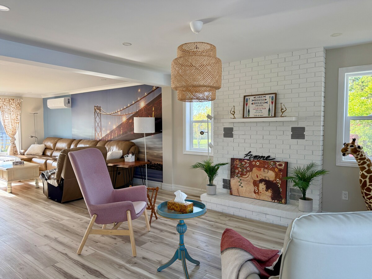 Relájate en esta acogedora y elegante suite situada en el corazón de Halifax. A minutos del centro de la ciudad y de fácil acceso a todo lo que la ciudad tiene para ofrecer, este apartamento cuenta con todas las comodidades del hogar, incluida una cocina completa, sala de estar, gran dormitorio principal con cama tamaño king, espacio de oficina, patio al aire libre con vistas a la hermosa cuenca de Bedford y espacio para dormir para cuatro personas con espacio para 6 personas bajo petición.