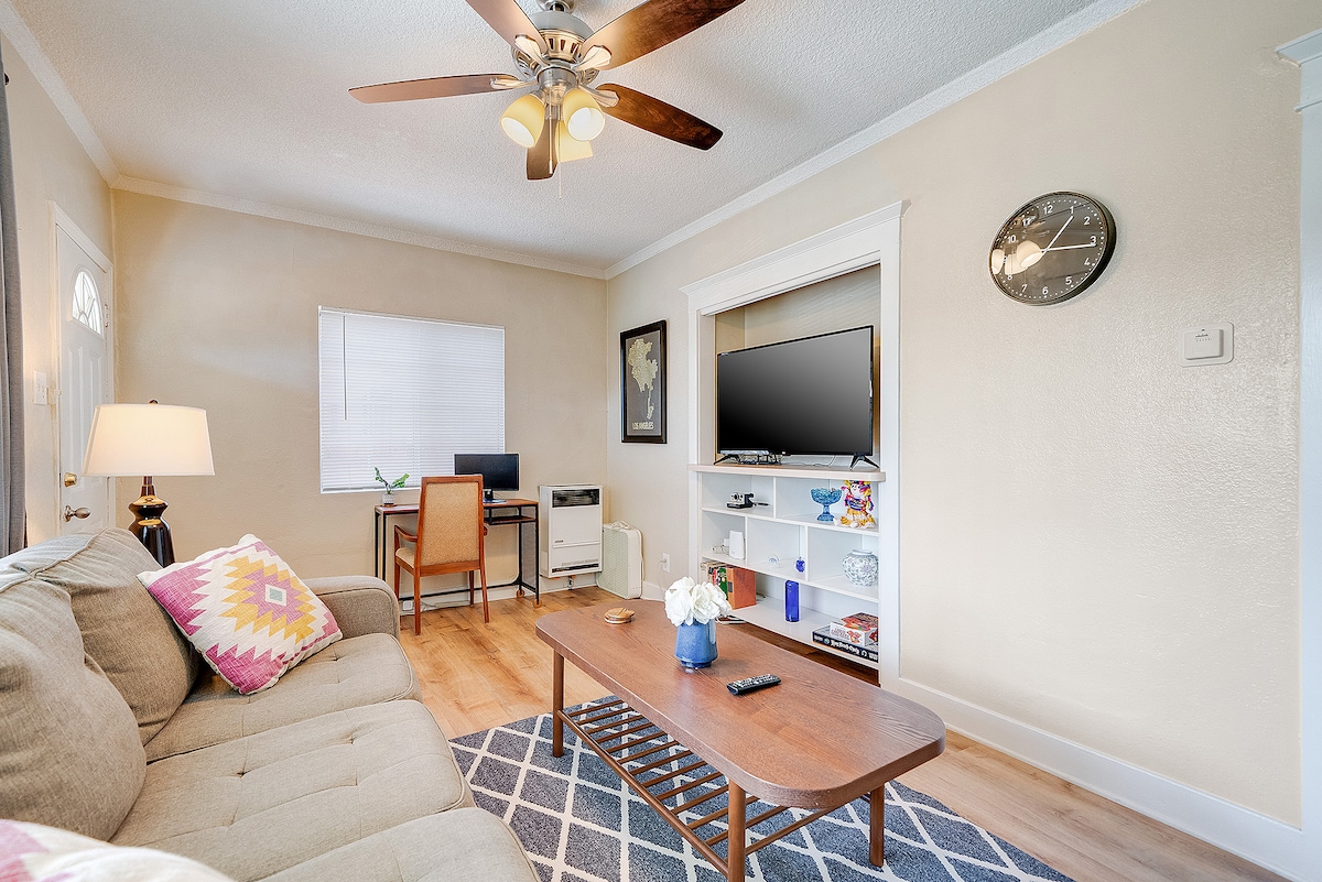 Esta espaciosa casa tiene una hermosa sala de estar con techo abovedado y un hermoso patio privado vallado que la hace increíblemente acogedora. Un diseñador de interiores se ha tomado el tiempo para maximizar la belleza y el carácter de esta encantadora casa con muchas plantas y toneladas de obras de arte. Una nueva bañera con patas, un televisor inteligente LED de 65 pulgadas y nuevos electrodomésticos de cocina nuevos te esperan en nuestro encantador oasis. ¡Te damos la bienvenida a tu próximo lugar de vacaciones! ¡Con gusto te hospedaremos!