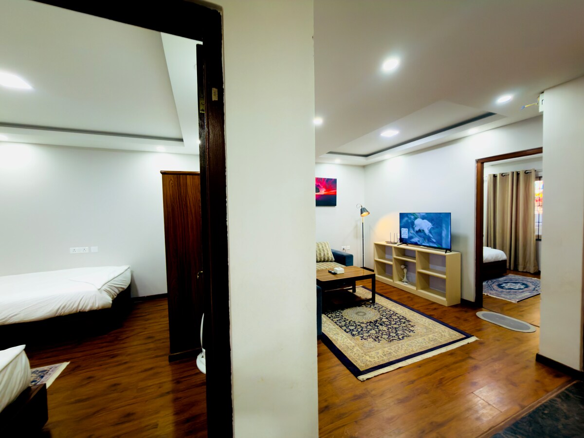 Esta escapada única y tranquila en la popular zona de Jawalakhel podría ser el lugar que buscas para pasar tiempo de calidad con tu familia. Este apartamento cuenta con hermosos detalles de carácter, interiores estéticamente agradables combinados con el elegante mobiliario. Equipado con las últimas instalaciones como TV de pantalla plana, aire acondicionado/calefacción y cocina totalmente equipada, el apartamento está diseñado para una estancia lujosa pero cómoda.