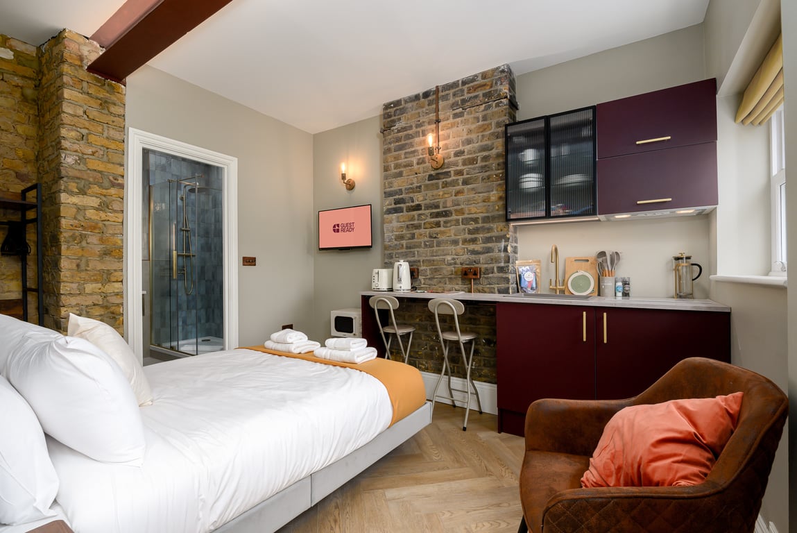 Disfruta del encanto histórico y la elegancia moderna en este apartamento tipo estudio recién reformado, ubicado en un edificio con 250 años de historia. La insonorización garantiza una estancia tranquila, mientras que tu propia cocina completa y baño privado de lujo te permiten desconectar y relajarte. Nuestra ubicación es inmejorable. Ubicado en una calle tranquila junto a Leicester Square, estás a pocos minutos de las mejores zonas, como el West End y Soho, con excelentes conexiones de transporte para futuros viajes. Haz de nosotros tu base y pasa más tiempo disfrutando de Londres.