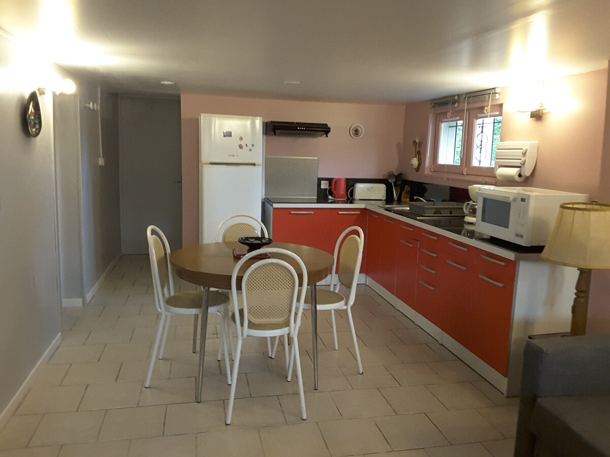 apartamento de 45 M2 para 4 personas, en la planta baja de nuestra casa altura del techo 1,90 m entrada independiente, tranquila cerca de bergerac y de todos los comercios, con cocina, salón convertible 2 personas, 1 dormitorio cama doble, cama de bebé, baño ducha, WC, horno y microondas, cafetera filtro, nevera ,muebles de jardín, barbacoa, piscina cerrada, visitas a los alrededores castillos, mercados, canoa kayak, paseo en gabarra por el Dordoña o simplemente descansar.
