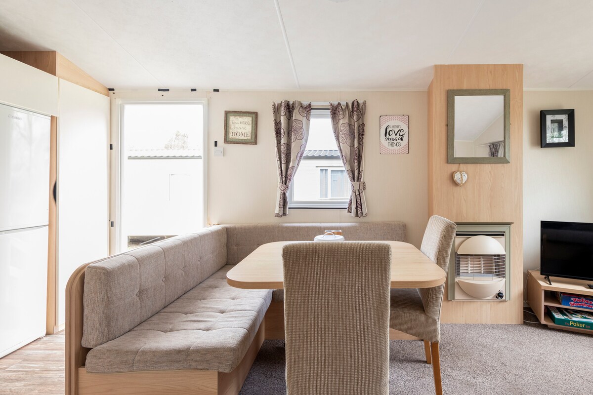 Three bedrooms one double with smart TV & en-suite two twin single bedrooms separate shower room fully equipped kitchen with everything you need for self catering needs. Comfortable living room smart Tv & DVD player Wi-Fi Netflix provided checkin Mon -Fridays 3/4 & 7 nights stay available. Freshly made beds on arrival towels & toiletries provided. Great location on the park close to complex & swimming pools
