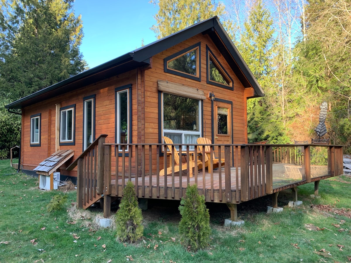 Cozy 240 sq ft tiny cabin with all the essentials, including washer/dryer, small oven, fridge, and microwave. Features an indoor shower plus a seasonal outdoor shower (hot & cold, May–Sept). Private deck, seating area, and propane fire pit. Walk to Palm Beach and the Sunshine Coast Trail. Convenience/liquor store nearby. 15 min to Saltery Bay ferry, 20 min to Comox ferry.