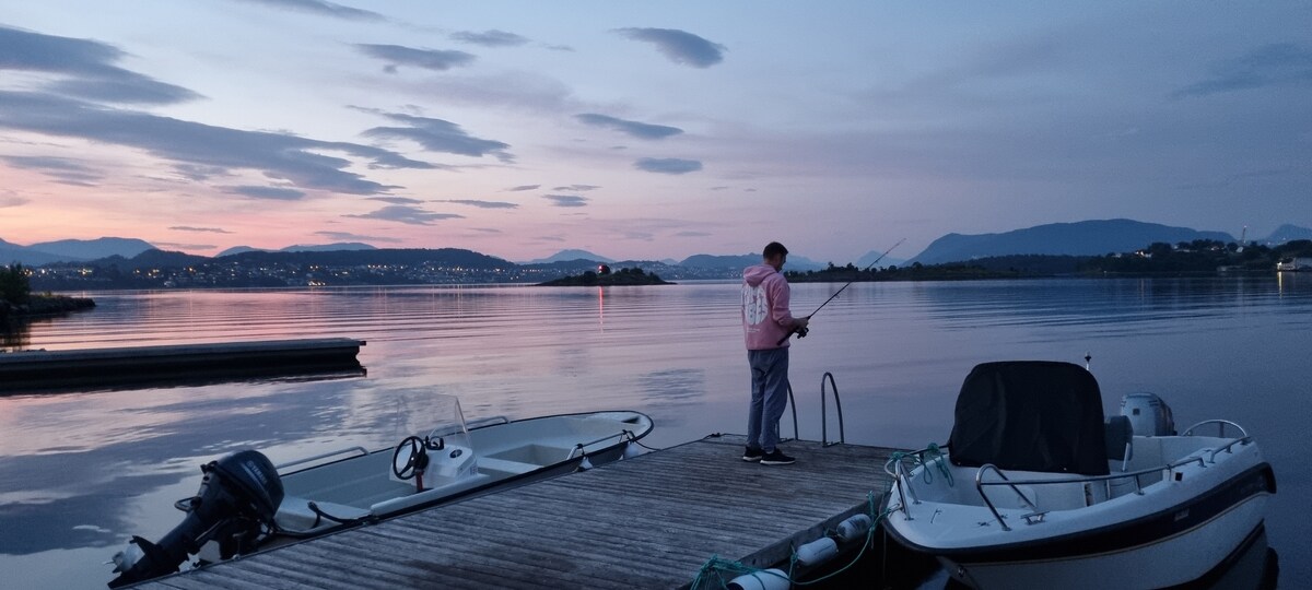 Opplev vårt idylliske sted ved kaikanten med utsikt å nyte ! Her finner du roen både inne og ute. Hva med en avslappende stund på den private terrassen eller nyte et magisk øyeblikk i vårt flotte spabad ! Du kan fiske rett fra kaikanten eller leie motorbåt og utforske den fiskerike Borgundfjorden. Stedet ligger like utenfor fantastiske Ålesund ! Med hurtigbåt fra Langevåg er du i Ålesund sentrum på 10 min, med egen bil tar det 30 min å kjøre. Det er kun 500m til nærmeste dagligvarebutikk.