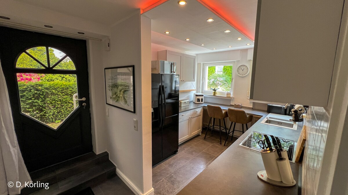 Apartamento de vacaciones para no fumadores de 3,5 habitaciones situado directamente junto al río y clasificado con 4 estrellas por la Asociación Alemana de Turismo en una antigua casa de entramado de madera. Es importante para nosotros que pases un buen rato aquí, te relajes y dejes que tu alma se relaje. La entrada a la ruta forestal de Sauerland está justo a la vuelta de la esquina y hay muchos lugares de interés cerca (Reckenhöhle, Balver Höhle, Luisenhütte). El lago Sorpesee está a pocos minutos en coche. ¡Le esperamos!