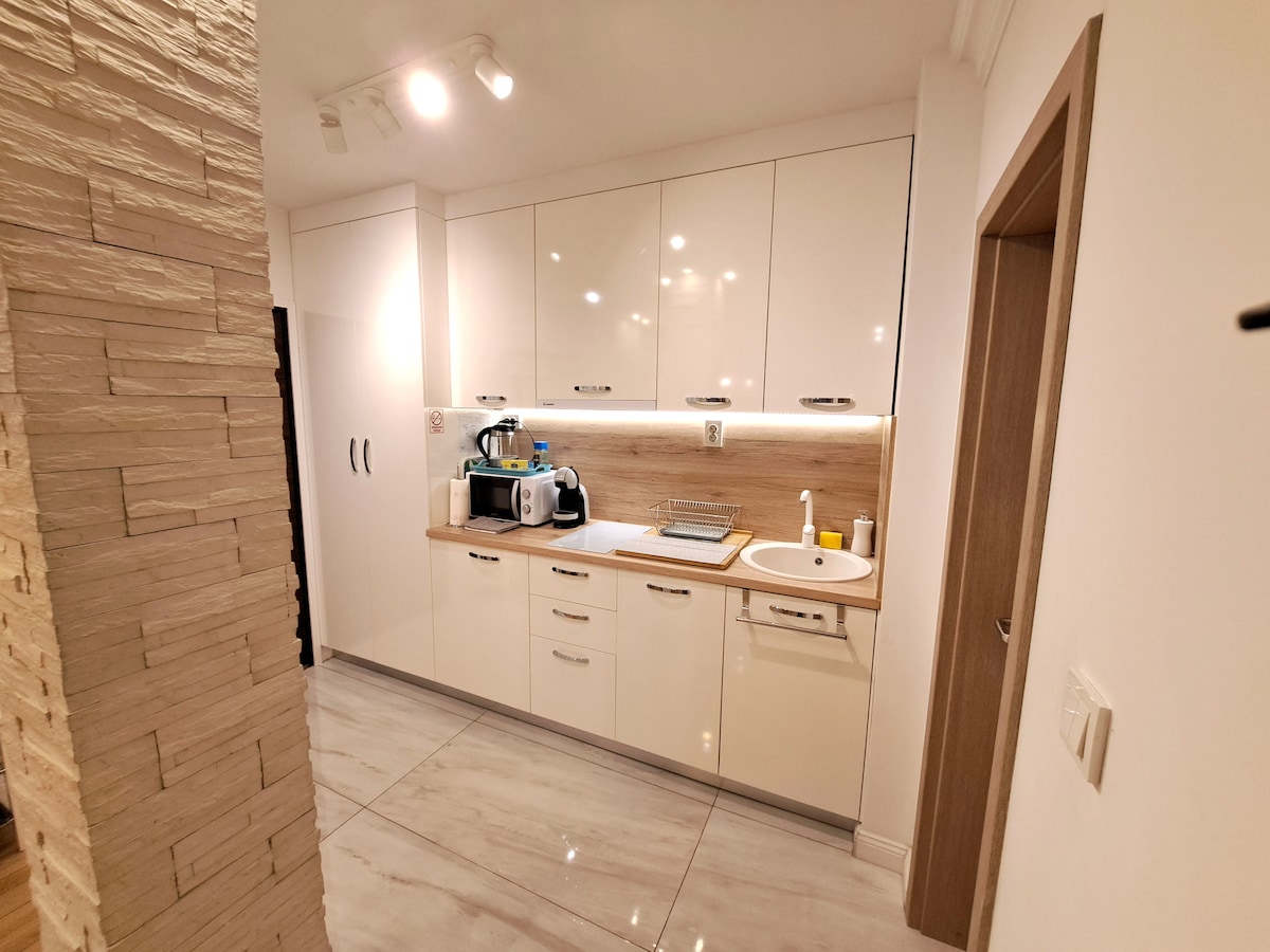 El apartamento está situado en las inmediaciones del Arena Center y tiene una plaza de aparcamiento privada. Terraza bellamente decorada para una mayor relajación con un café con vistas a la vegetación del jardín junto a la terraza. El apartamento está amueblado de forma moderna con todos los electrodomésticos necesarios, como cafetera, hervidor de agua, horno microondas, lavadora, velocidad de Internet de 50 Mbps. Está cerca del transporte público y del centro comercial Arena.