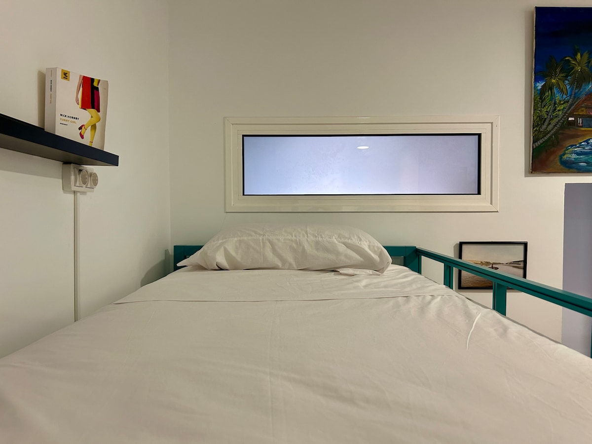 Habitación interior de 9m2 con baño compartido en surfhouse/coliving de 3 plantas. A 1 minuto caminando de la playa de las canteras. Ambiente dígital nómada y surfero, disfruta de tu privacidad a la vez que conoces a gente como tú. Bienvenid@ a un grupo de amig@s que cuidan de la casa con positive vibes, donde practicamos deporte y nos divertimos con unas cervezas. Somos instructores titulados de KITESURF y SURF. Unete a un nuevo estilo de vida!