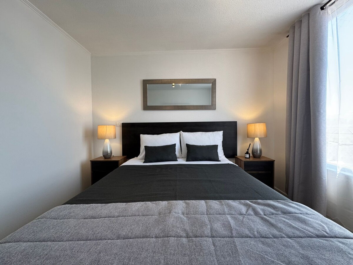 Moderno y acogedor departamento con aire acondicionado en el corazón de Santiago. A pasos del metro y del Centro Histórico, rodeado de museos, mercados y restaurantes. Cama king, cocina equipada, balcón y wifi rápido, ideal para viajes o estadías largas. Edificio seguro con conserje 24/7. Atención personalizada, check-in flexible y recomendaciones locales para que disfrutes la ciudad como un residente, con comodidad y tranquilidad.