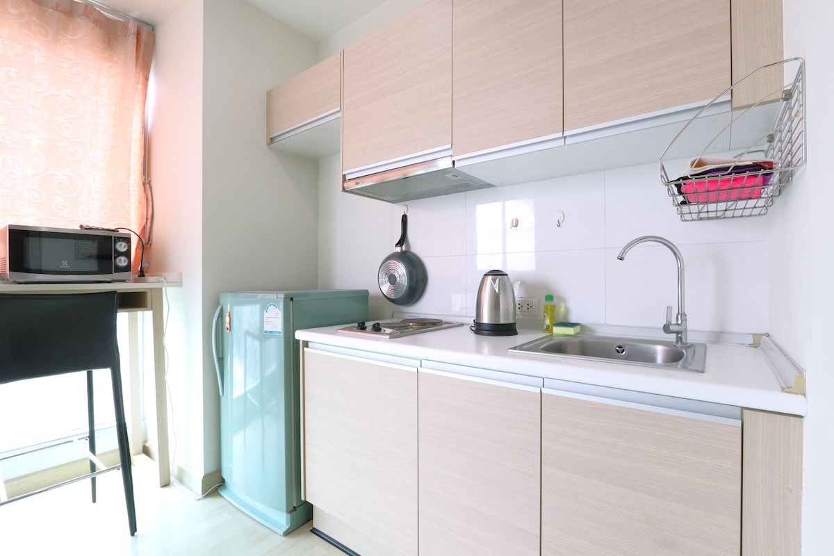 Sawadee Kha! Gracias por visitar mi habitación. Un moderno y lujoso apartamento de 1 dormitorio cerca del metro MRT y excelentes instalaciones [wifi/piscina/gimnasio/jardín/azotea]. A 10 minutos a pie de la estación de MRT Ratchadaphisek 15 minutos o 3 paradas en MRT hasta el parque Chatuchak 20 minutos o 4 paradas en MRT hasta Central Rama9 45 minutos o 10 paradas en MRT y Airport Rail Link hasta el aeropuerto de Suvarnabhumi Además, ofrecemos servicio de recogida en el aeropuerto para huéspedes VIP como tú como de cortesía. Estamos esperando que seas nuestro invitado :)