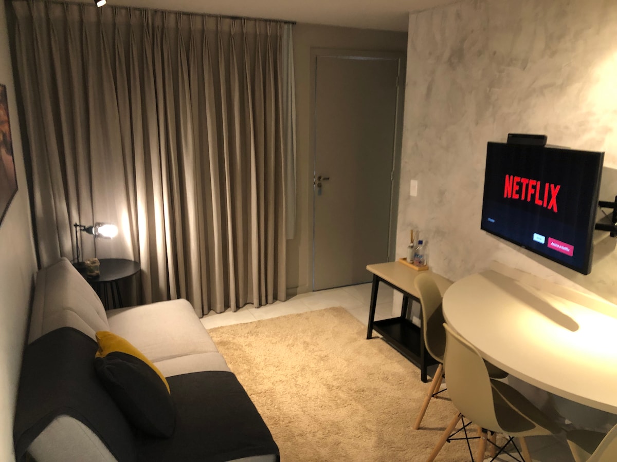 Brand new apartment, with a contemporary style, of a high standard and very well located, with a privileged view of Allianz Parque. Next to shopping malls, various businesses, means of transport, parks, tourist attractions and business buildings. The studio is complete, with a comfortable queen bed, Smart TV and Internet. Kitchen with all utensils, cooktop, refrigerator and microwave. With parking (rotary). Close to everything, cozy, perfect for experiencing fantastic moments.