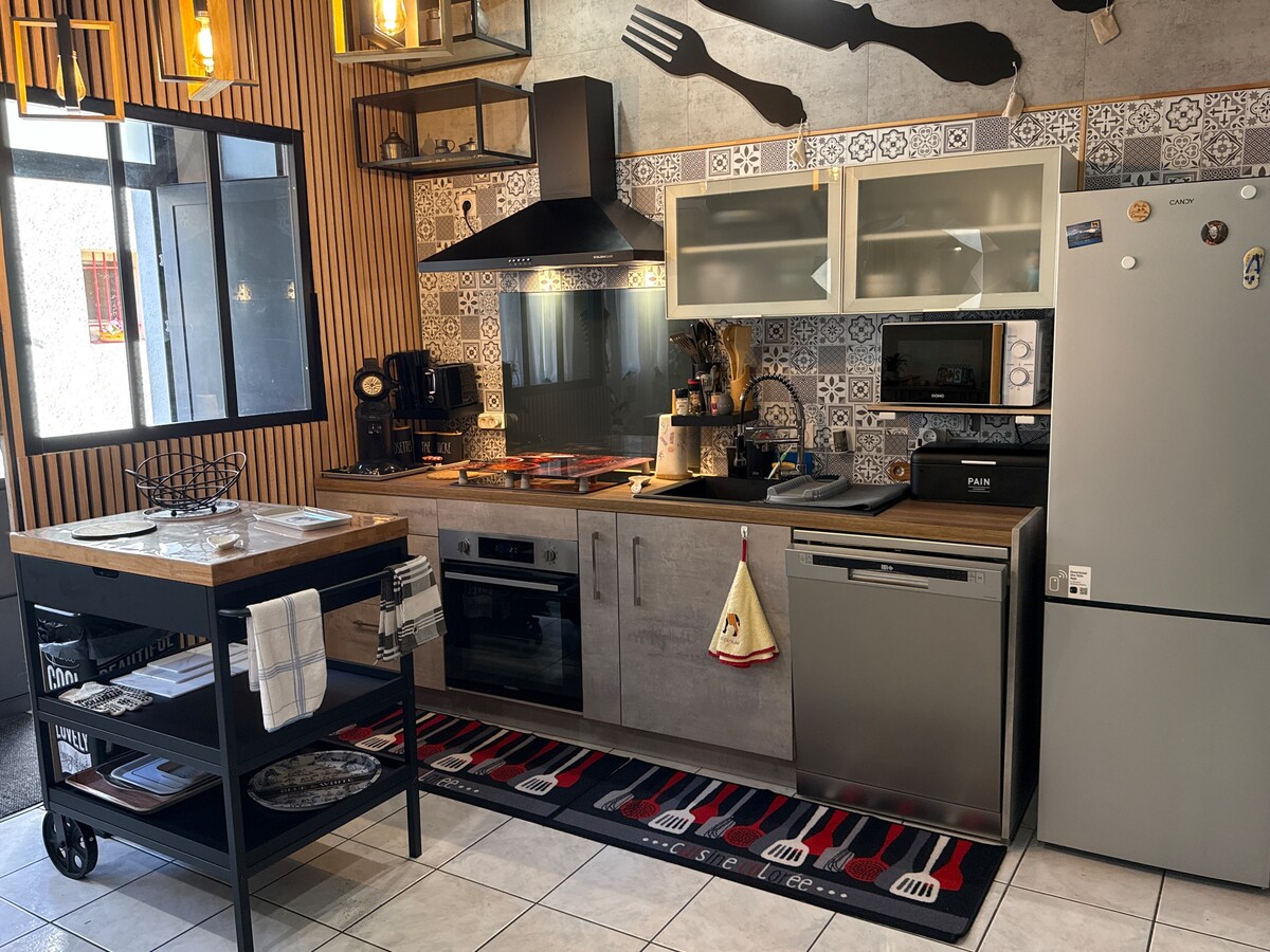Esta tranquila y elegante T2 de 42 m2 te da la bienvenida en un ambiente vintage de los años 50. Situado a tiro de piedra del centro de la ciudad, cerca de tiendas y a pocos minutos de las playas, ofrece un entorno ideal para relajarse. Disfrutarán: - su dormitorio soleado y su cómoda cama "tamaño queen", - su cálida sala de estar con sofá cama, - su soleado jardín privado y su barbacoa. Perfecto para disfrutar del clima mediterráneo. Disfruta, Fabien