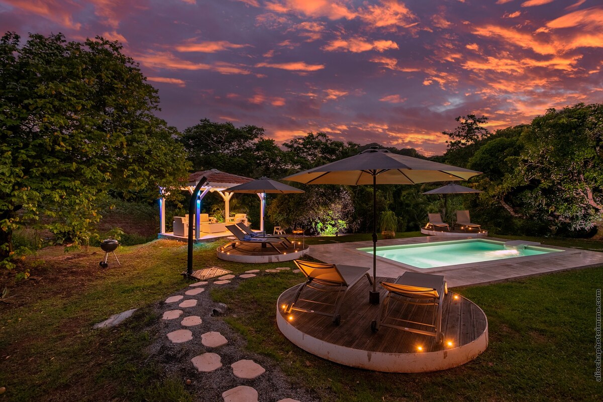 A la sombra protectora de los grandes árboles del viajero, con su piscina climatizada, relájese en este remanso de paz con vistas al jardín y al mar en la distancia. En pareja, en familia o solo, en viaje de negocios, encontrará diferentes alojamientos adaptados a sus necesidades con todos los equipos y servicios a su disposición en su habitación o en los espacios comunes.