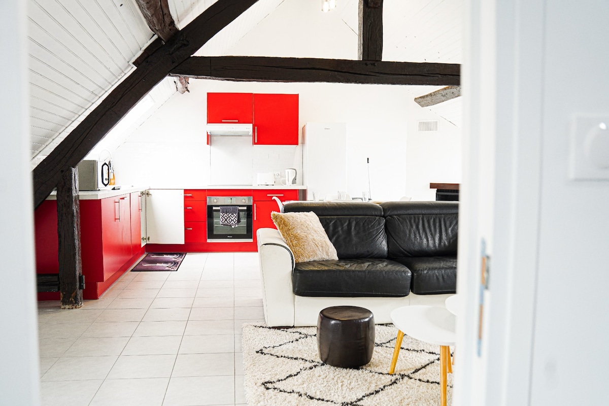 Chalet Lutétia - Charme historique et détente Chalet Lutétia est un refuge authentique imprégné d'histoire, poutres apparentes et hauteur sous plafond vous transportant dans une époque révolue. Chambre parentale avec baignoire balnéo et jets massants, un cocon intime mêlant simplicité et confort. À 850 m de la gare, alliez proximité de Paris ST. Laz. en 15min et tranquillité dans ce cocon chaleureux. Réservez au Chalet Lutétia pour une expérience authentique au cœur de Cormeilles-en-Parisis.