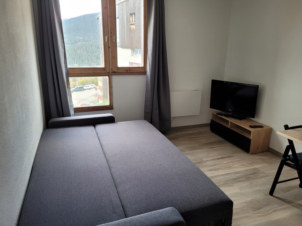 Pour vos vacances d'été ou d hiver.Studio composé de 2 lits superposés et d un canapé lit , la cuisine est équipée de plaque vitrocéramique, grand frigidaire,micro onde, appareil a raclette, cafetière classique et tassimo..Il y a un petit balcon et un casier à ski a disposition. A deux pas des remontées mécaniques et commerces,retour à ski au studio.Sur la station luge quatre saison, accrobranche, parapente,chien de traineaux, restaurants.Depart de randonnées et VTT.