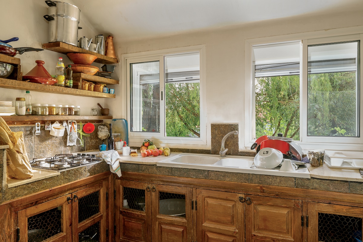 Stars Valley comes with a whole package including most importantly security, along with central heating, both an outdoor and an indoor fireplace, a large veranda, an outdoors dining area, a fully equipped kitchen (Nespresso machine, dishwasher, toaster, kettle, pop corn machine, juicer, refrigerator, cutlery and all the necessary items), 4K TV with Netflix account, wifi, and network coverage. Each of our two bedrooms has its own TV. Warm water is available 24/7.