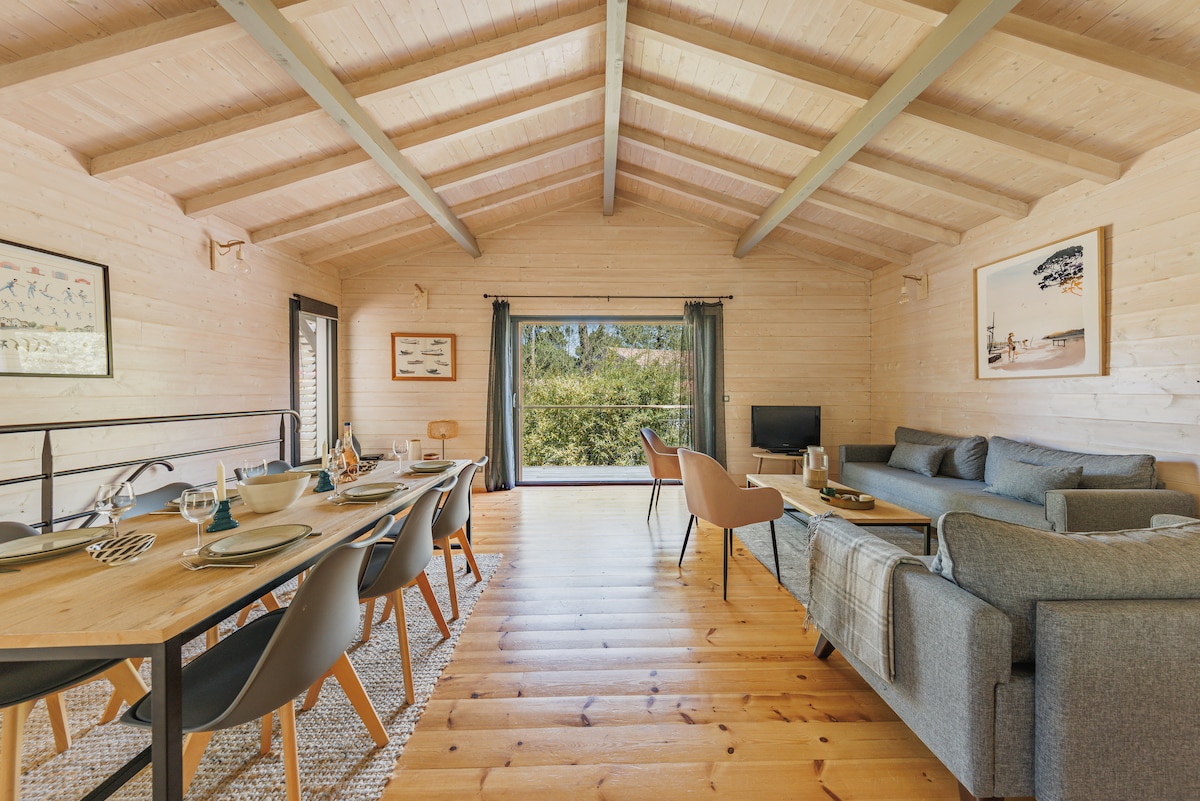 Esta propiedad familiar tiene una vista fuera de lo común de la cuenca de Arcachon, su ubicación en posición dominante le da a su cabaña una sensación de exclusividad y bienestar. El bosque de pinos por un lado, la cuenca al ritmo de las mareas por el otro, este es un entorno ideal para relajarse lo más cerca posible de la naturaleza. ¡Atención! Tenga en cuenta que no hay cocina, sino solo un microondas, un mini bar y una máquina Nespresso. La vajilla está a su disposición.
