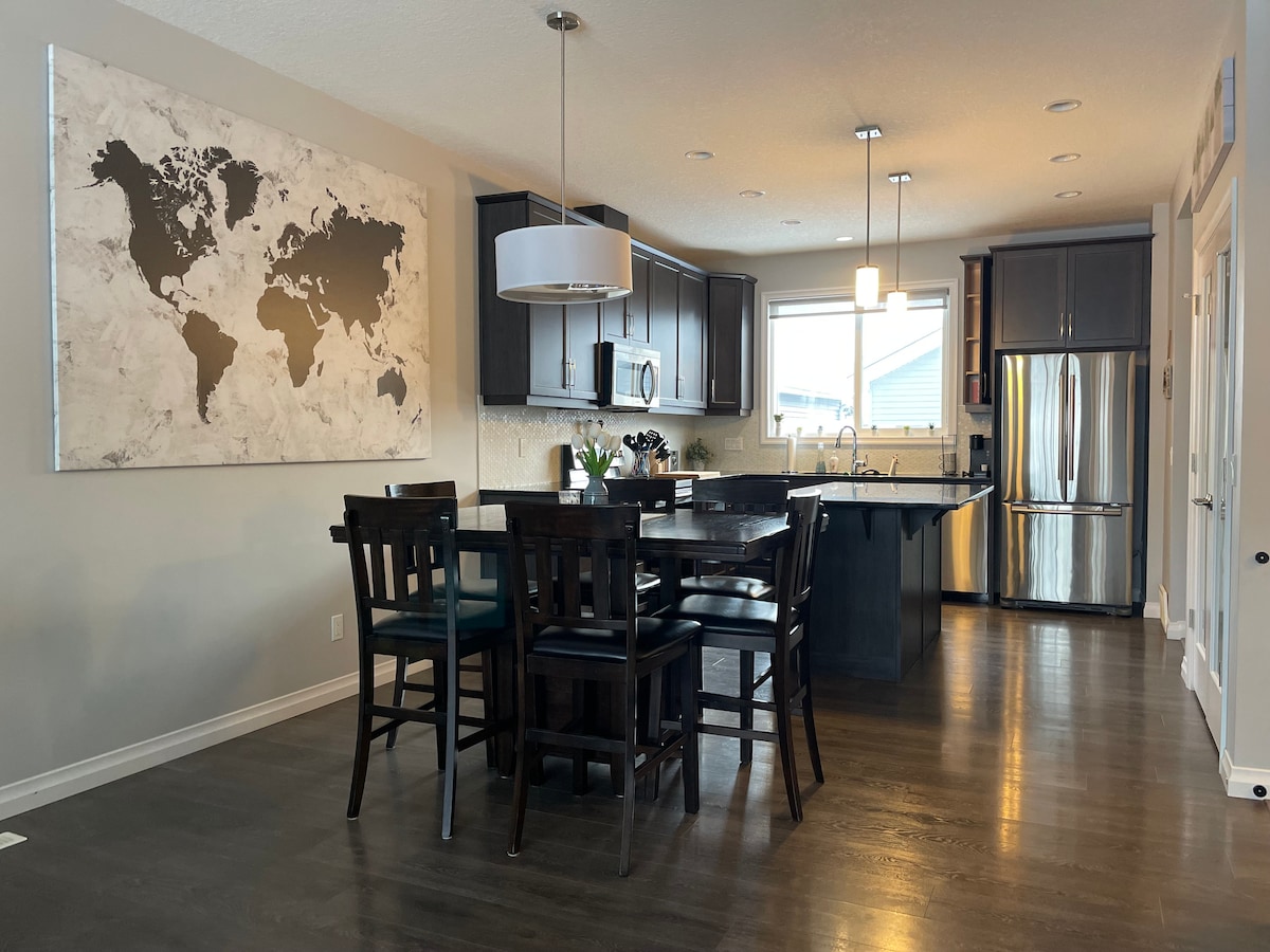 Bienvenido a nuestro hogar lejos de casa en Summerside Trae a toda la familia y relájate en esta acogedora y espaciosa casa de dos niveles ubicada en el barrio South Edmonton Common Summerside. A solo 13 minutos en coche del aeropuerto de Edmonton y a 5 minutos del centro comercial South Common. Esta casa tiene 3 dormitorios espaciosos, 1 cama tamaño king, 2 camas tamaño queen, dos baños completos arriba y medio baño en el nivel principal. Bonita cocina equipada para cocinar y entretener mientras reúnes a todos. ¡Una estancia obligada!