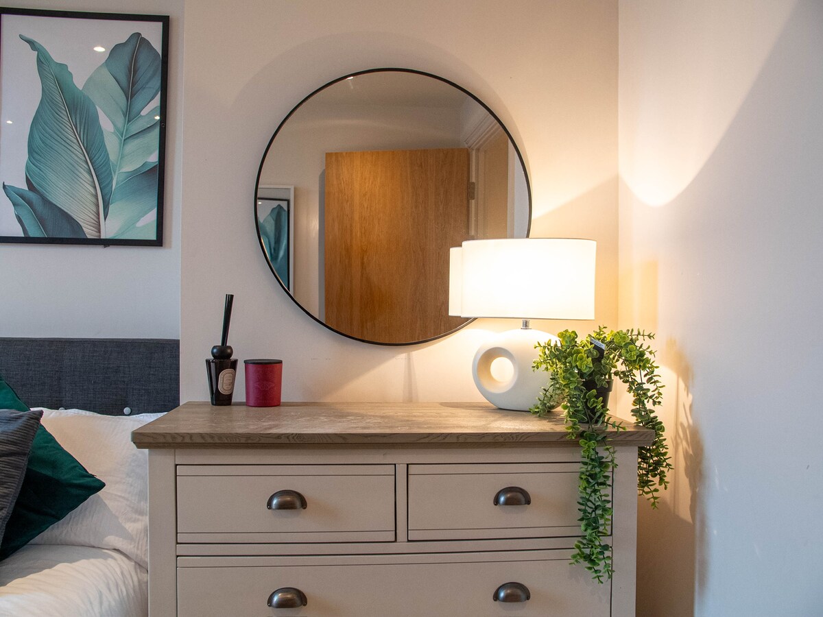 Oculto debajo de una casa adosada en una tranquila calle sin salida, este tranquilo apartamento estudio con entrada privada es perfecto para viajeros solitarios o parejas que buscan calma con estilo creativo. Disfruta de una cómoda cama tamaño king, calefacción por suelo radiante, baño privado y cocina pequeña compacta. A solo 10 minutos del centro de la ciudad de Leeds en autobús (o a 30 minutos a pie), también estás muy cerca de Versa Film Studios, dos frondosos parques, una práctica panadería y un supermercado local barato y bien surtido.