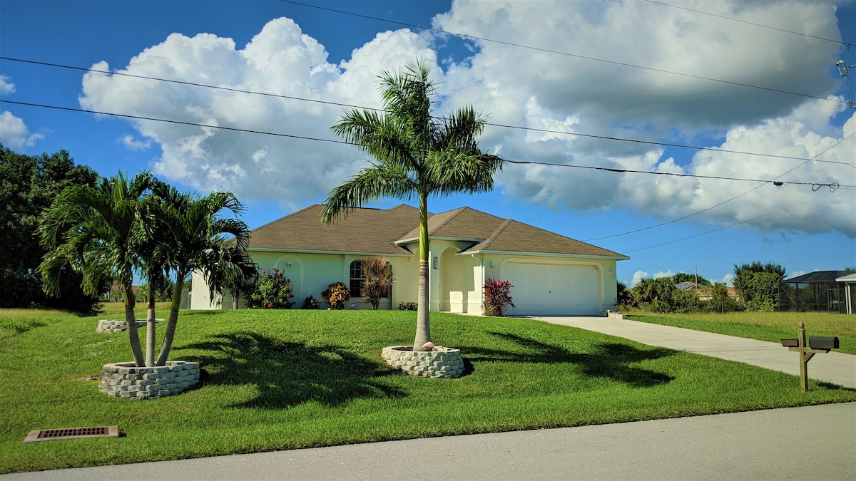 Unwind Cape Coral te da la bienvenida al soleado suroeste de Florida, cerca de magníficas playas, pesca, conchas, entrenamiento de primavera de los Minnesota Twins y mucho más. Ven a disfrutar de esta casa de nueva construcción con piscina climatizada, kayaks, sala de juegos climatizada y refrigerada (PlayStation 5), acceso al golfo (canal de agua salada), televisores 4k oled y muchas más comodidades refrescantes. Te encantará esta casa limpia y luminosa con una decoración encantadora. ¡Ubicado en el codiciado barrio de Pelican en el suroeste de Cape Coral!